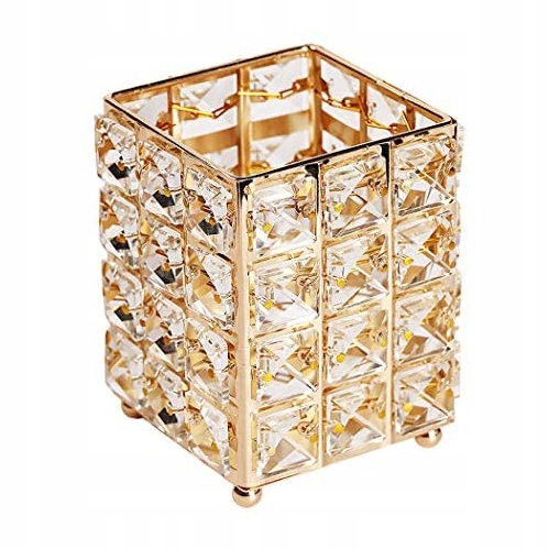 Стильний органайзер у гламурному стилі для пензлів для макіяжу, аксесуарів і косметики. Художньо виготовлена ємність, крім того, що радує око і є неймовірною прикрасою туалетного столика, ще й практична. Ви можете зберігати пензлі для макіяжу, різні види косметики у вигляді олівців, а також повсякденні речі, такі як ручки, ножиці та інші дрібниці. Виготовлена з міцного ABS-пластику, що імітує кришталь і алюміній. Його гарний зовнішній вигляд означає, що він може прикрасити як туалетний столик, ванну кімнату, так і вітальню. Його також можна використовувати як свічник.
