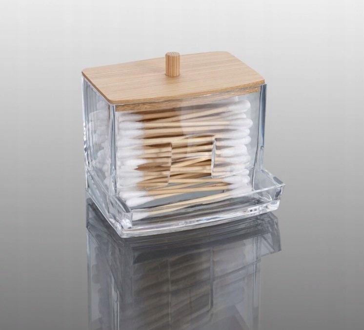 Практичний отвір дозволяє швидко витягнути палички без необхідності зняти кришку. Бамбукова кришка з ручкою забезпечує гігієну та стильний вигляд. Завдяки прозорим стінам, ви завжди бачите, скільки залишається продукт. Це не лише організатор, але й декоративний елемент кожної ванної кімнати!