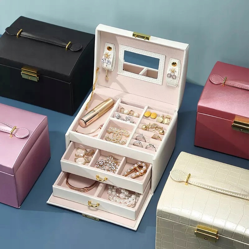 Практична коробка має 20 різних відділеньі поглиблень, завдяки яким ви можете контролювати порядок вашої колекції . Крім відділень, коробка також має 2 шухляди, що висуваються незалежно. Відділення бувають різних розмірів і ідеально підходять для зберігання годинників, браслетів, ланцюжків, сережок і навіть монет або флешок із важливими даними. Посередині також є дзеркало, яке ідеально підходить для одягання сережок або інших прикрас.