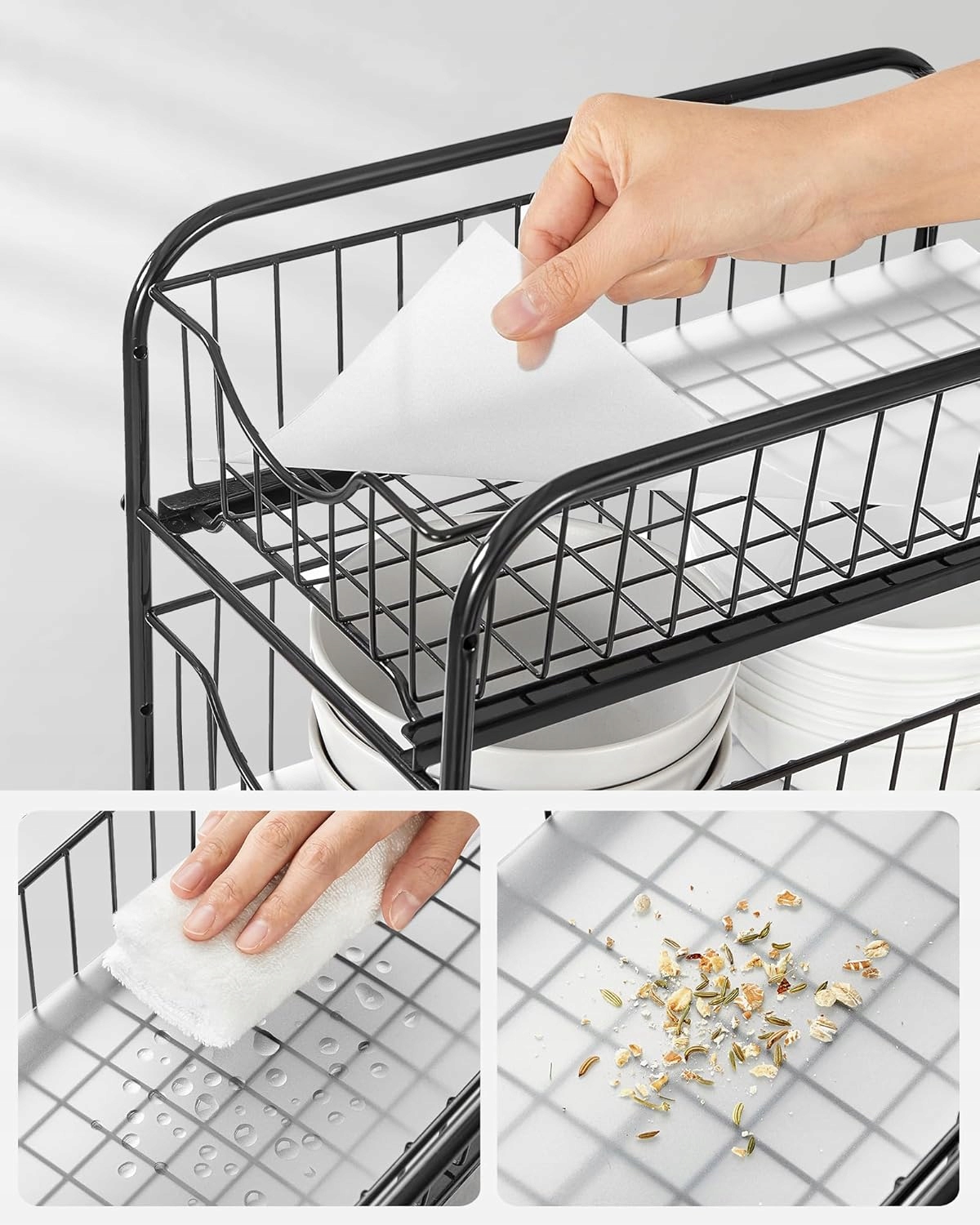 - [Що ви отримуєте] 2 x 2-рівня сталевих полиць пластикові ноги запобігають подряпинам і збільшують стабільність. Завдяки висувним кошикам, ваші речі легко доступні