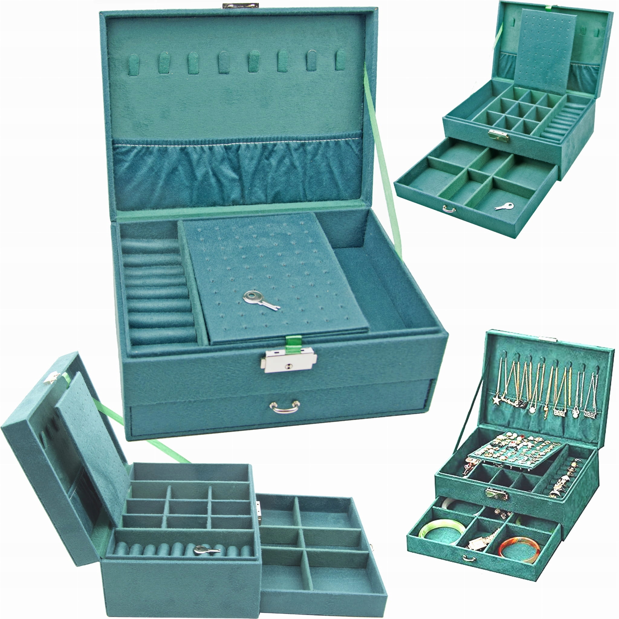 ювелірні вироби / коробка / 16 відсіки / 8 гачків / 70 отворів для паличок / 11 порожнин для кілець / кишені на еластичній смузі / наборі з ключовою / ідеальною ідеєю подарунка / багажником у кольорі пляшки зеленого 1>