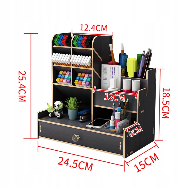 Багатошаровий дизайн зберігання: Розмір настільного органайзера 25*15*25 см. Стіл-тримач для ручок 6 похилих відділень, 4 відділення з плоским дном, 1 висувна шухляда, кілька відділень Забезпечує достатньо місця для різних дрібні предмети для впорядкування ваших речей.