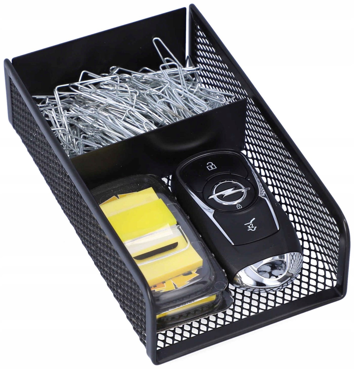 Невеликий сітчастий пенал із 2 відділеннями для невеликих офісних аксесуарів. Це дозволяє вам контролювати безлад на вашому столі. Довговічність забезпечується металом, з якого він виготовлений, а ніжна текстура сітки створює елегантний ефект легкості.
