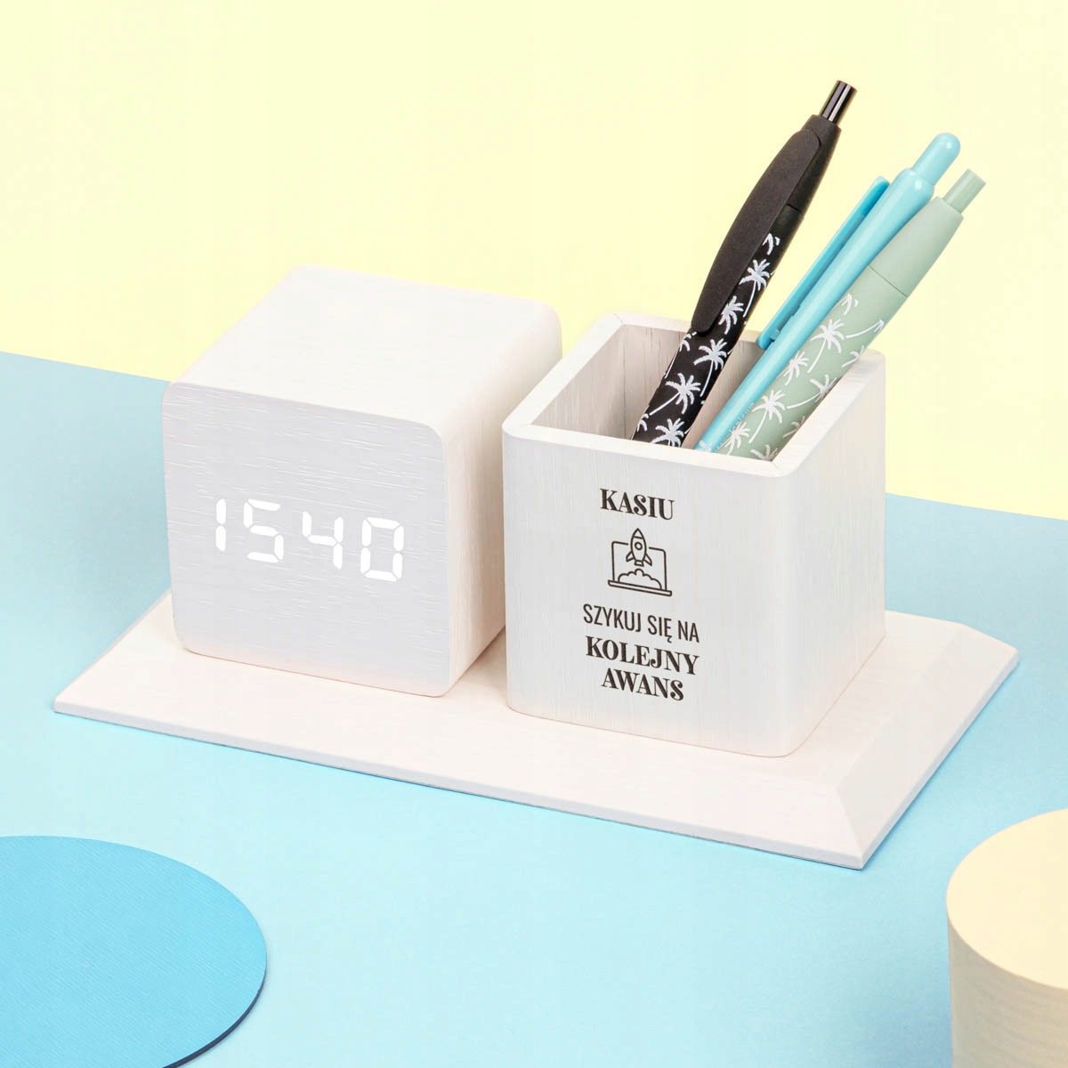 ОРГАНІЗАТОР Настільна коробка з годинником ПОДАРУНОК НА ДЕНЬ НАРОДЖЕННЯ З ГРАВІЮВАННЯМ