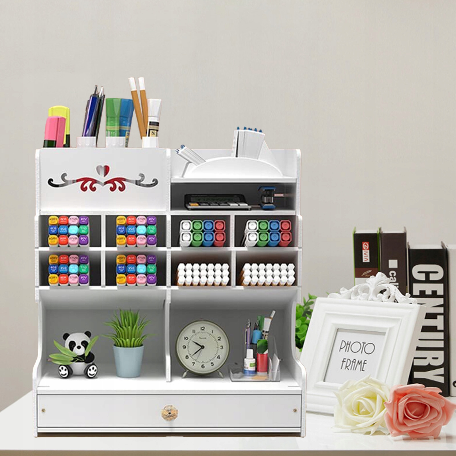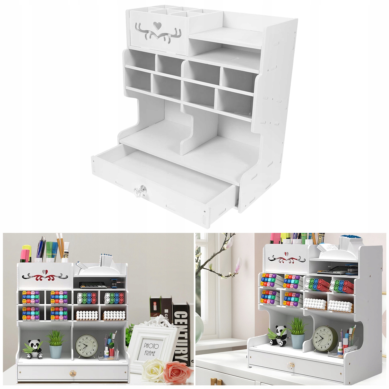 , оснащена багатьма відсіками та вбудованою ящиком, цей організатор столу забезпечує багато місця для невеликих предметів, що допомагає зберегти робочий стіл без безладу. Його інтелектуальна конструкція максимізує продуктивність зберігання, зберігаючи робоче місце в чистоті та замовленні.