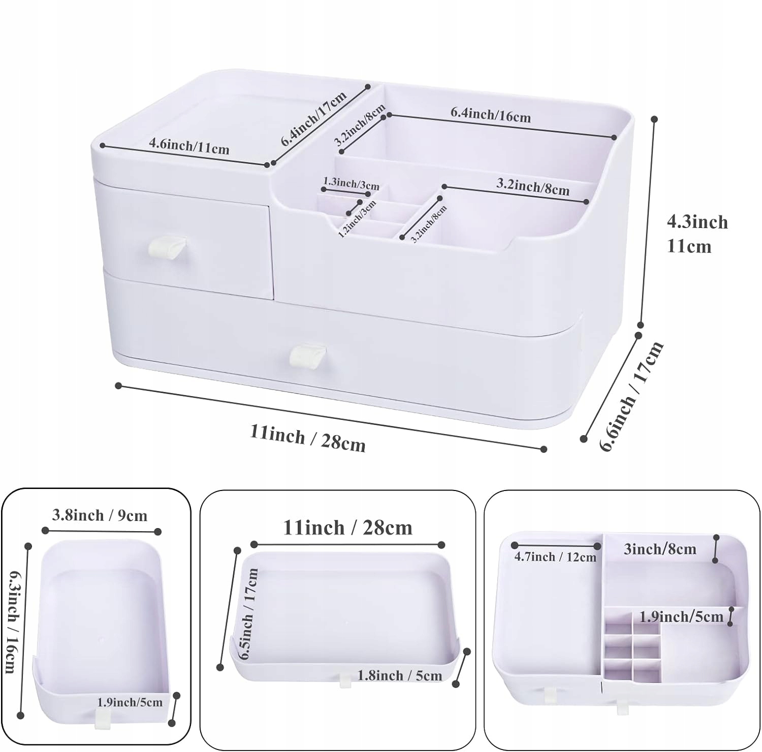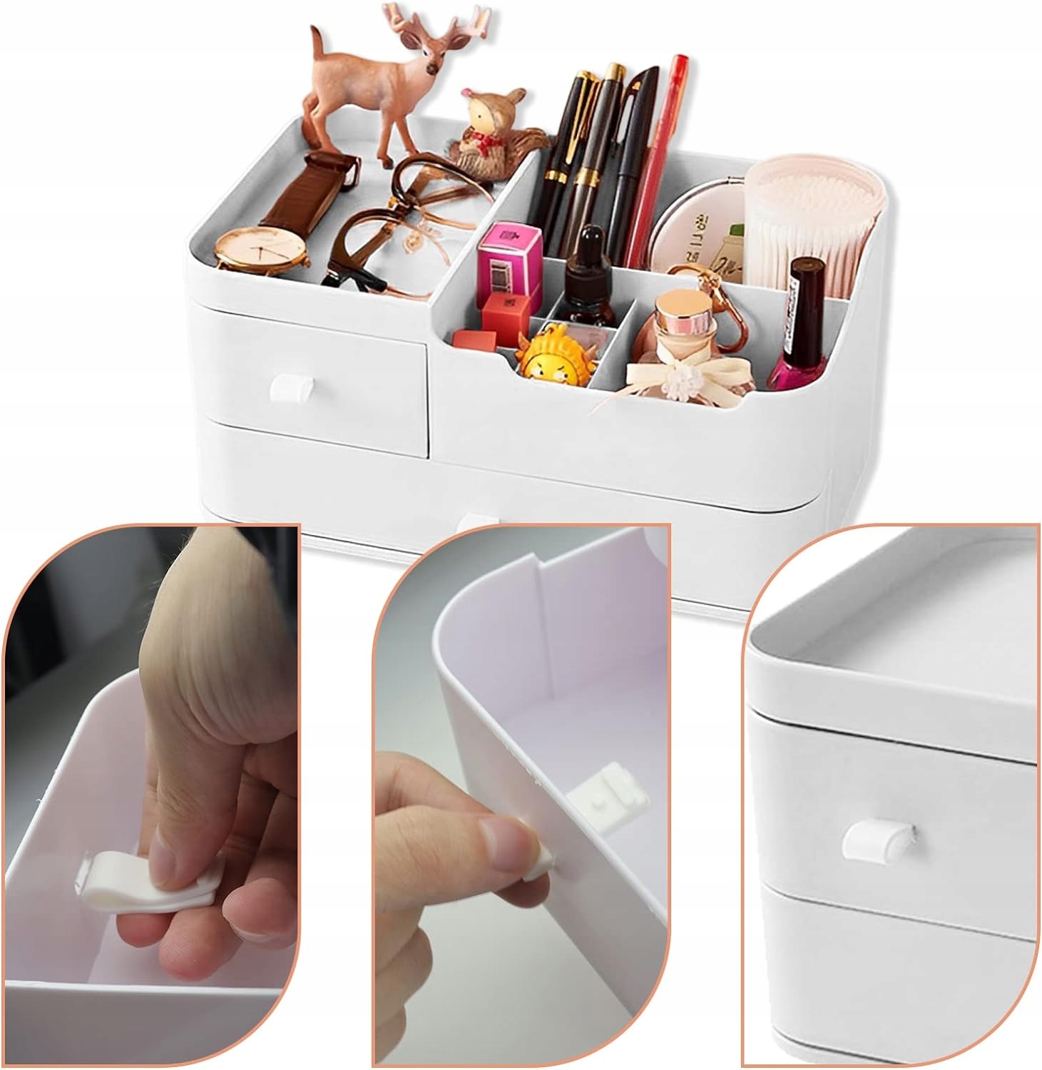 👝 Багатофункціональний простір для зберігання: ідеально підходить для зберігання ювелірних виробів, засобів по догляду за шкірою, помади, косметики, канцелярських товарів тощо. Ящики можна легко витягнути та вилучити. Верхній рівень використовується для зберігання найбільш часто використовуваних продуктів.