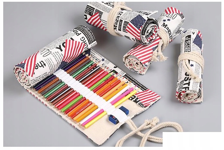 Пенал має 38 місць для кольорових олівців або пензликів. Він обгорнутий рядком.