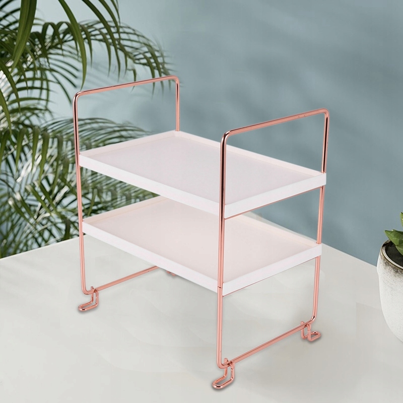 Організатор має 2 полиці, а їх висота регулюється . Ви можете відрегулювати інтервал між полицями для розміщення косметики різного розміру та висоти. Завдяки цьому у вас є повна гнучкість , і ви можете адаптувати організацію до своїх потреб.