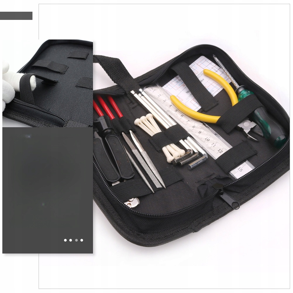 ✅ ✅tra для зберігання інструментів виготовлена з найвищої якості оксфордської тканини, твердої та довговічної, забезпечує довше життя. Розумний розмір, структура рук, що забезпечують комфортне перенесення. Правий простір для зберігання для зберігання невеликого набору для ремонту, таких як викрутки, плоскогубці, ключі, але він також підходить для зберігання приладів, таких як кубики гітари, струни тощо.