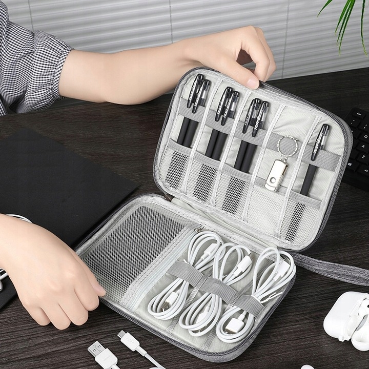 Високоякісний органайзер для кабелів, проводів, карт пам'яті та інших аксесуарів для електронних пристроїв. Чудова ідея подарунка для мандрівників.