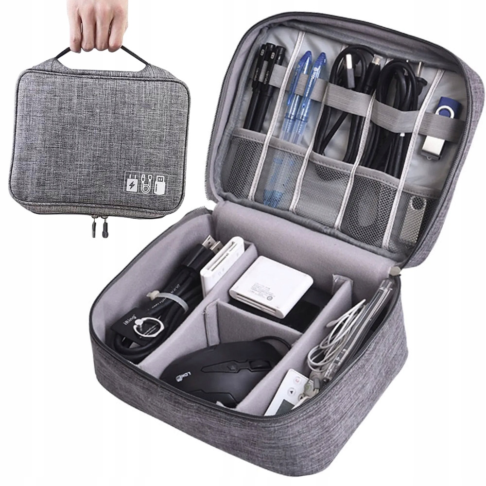 Органайзер для електроніки – це продукт, який дозволяє зберігати електронні аксесуари, такі як зарядні пристрої, флешки, диски, навушники або кабелі, захищаючи їх від заплутування, вологи та пошкодження. Завдяки ергономічному дизайну і компактним розмірам він легко поміститься у валізу, бардачок автомобіля або рюкзак, що робить його ідеальним супутником у подорожах. Продукт також ідеально підходить для щоденного використання вдома чи в офісі, дозволяючи зберігати всі ваші аксесуари в одному місці. Сумка оснащена відділеннями для зручного сортування речей, а також ручкою для зручного перенесення, застібається на міцну блискавку. Завдяки використаним матеріалам виріб стійке до вологи та стирання. Його розміри 245x185x100 мм.
