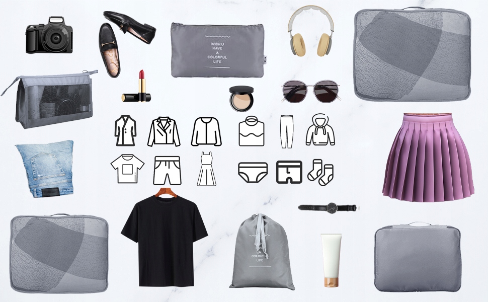 - Набір функціональних органайзерів із 9 предметів ідеально підходить для ручної поклажі, сумок на вихідні, сумочок і щотижневих валіз.