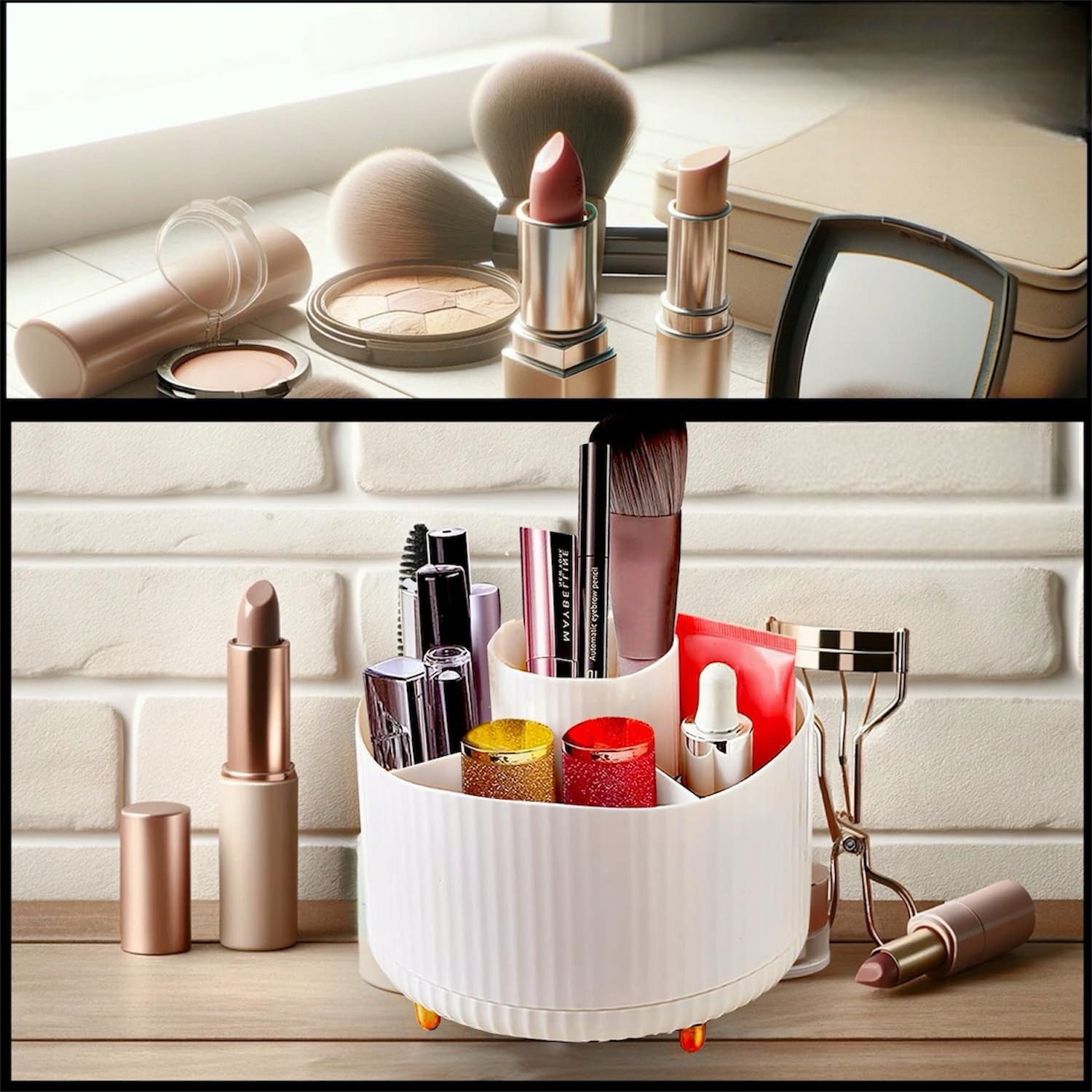 - Багато варіантів зберігання: Наш організатор поєднує стильне місце для зберігання косметики з практичною організацією ванної кімнати. Ідеально підходить для макіяжу, пензлів, косметики та аксесуарів для ванної кімнати, підтримує порядок у комодах та ванні кімнати. Прозорий дизайн та сучасний дизайн роблять його привабливим та практичним півзахисником у кожній кімнаті. Косметика під рукою. Ідеально підходить для організації косметики, статті з макіяжу та статті ванної кімнати. Ідеально підходить для ранкового ритуалу. Це не лише функціональний, але й елегантний декоративний елемент.