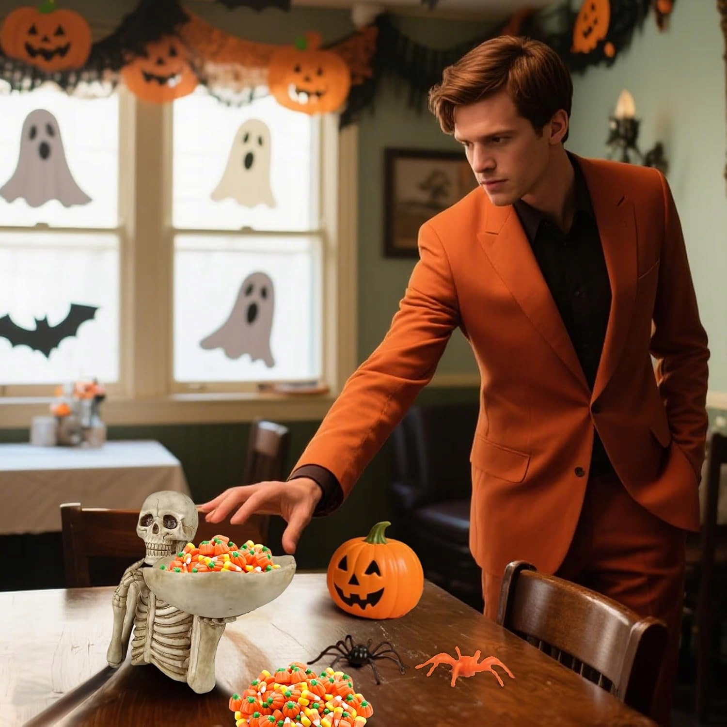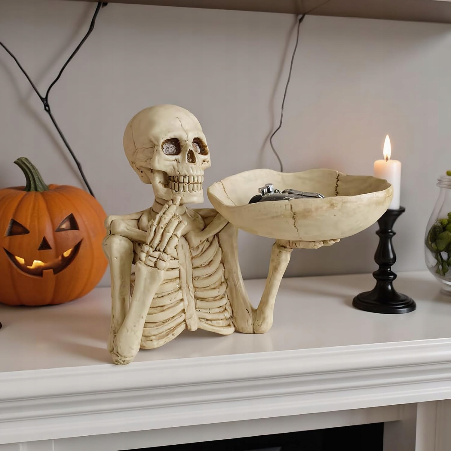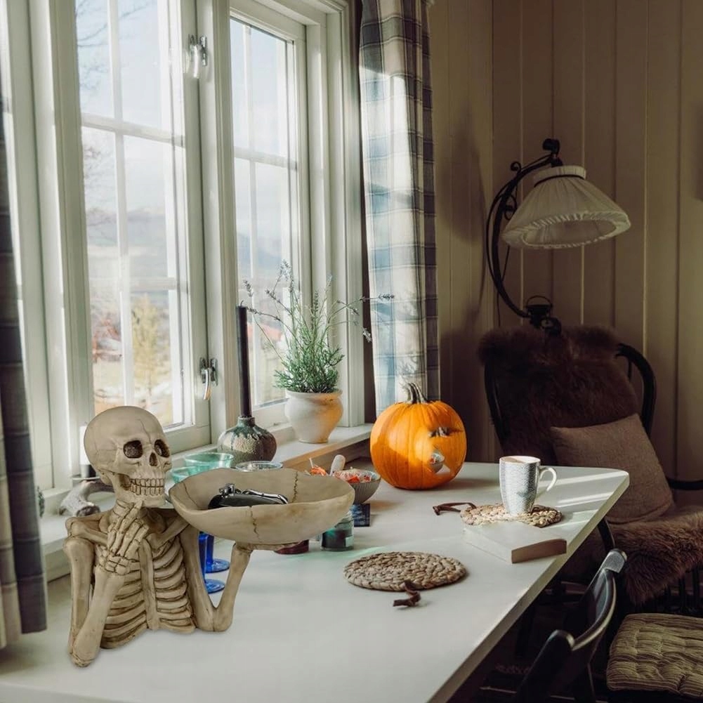 💀 Унікальний дизайн скелета: миска для цукерок на Хелловін має детальний і реалістичний дизайн скелета, який додасть моторошного, але стильного відтінку вашим декораціям на Хелловін. Ідеально підходить для створення моторошної атмосфери на вечірках або як щоденна прикраса на Хелловін.