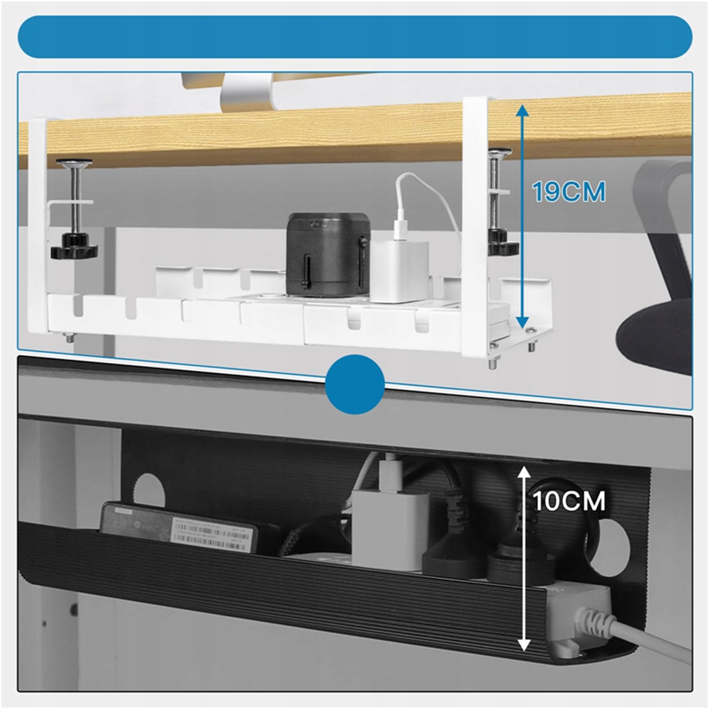 - Таблиця управління дротом може бути легко приєднана до столу, тому вам не потрібно просвердлити отвори, і це також може бути міцно приєднане до таблиці.