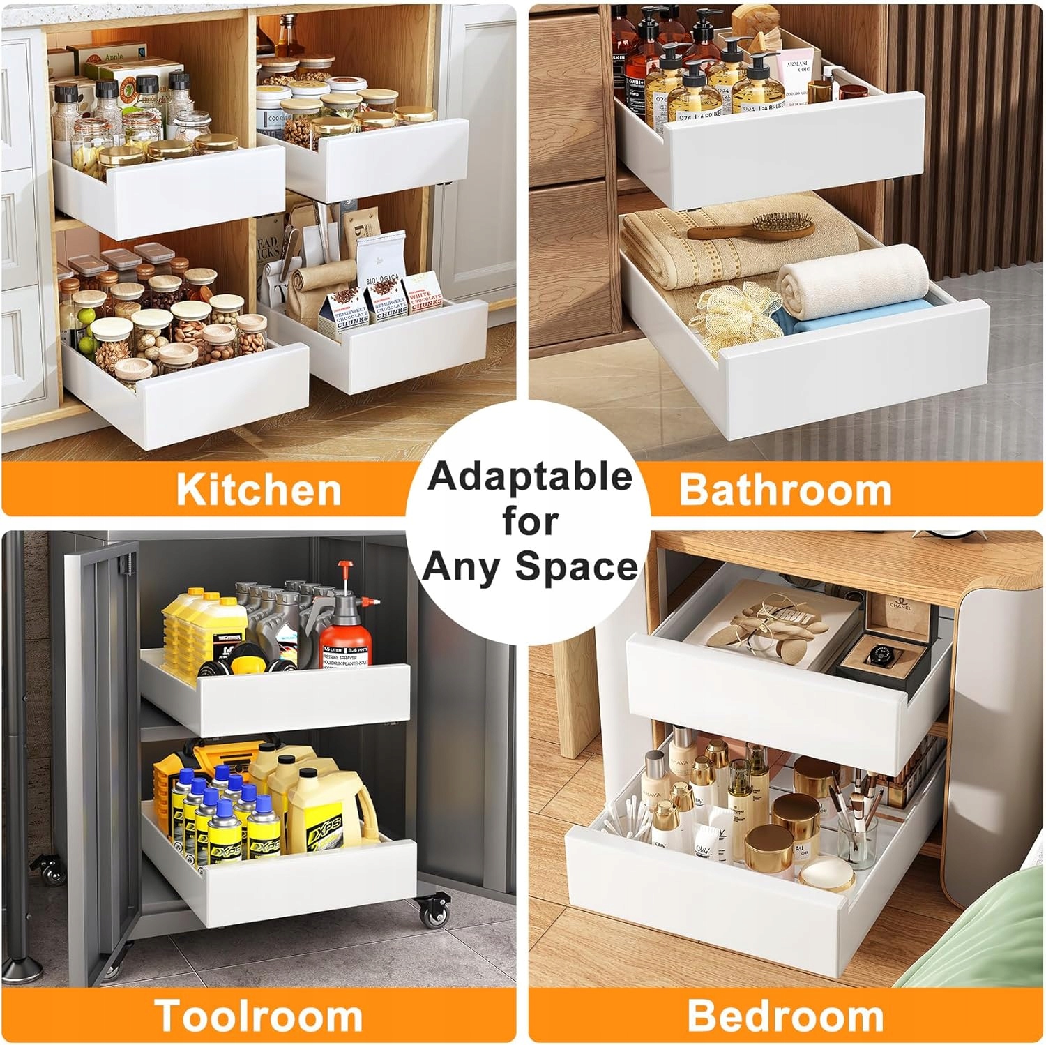 Простий доступ до предметів Вам більше не доводиться стати на коліна з цим організатором, щоб досягти нижніх полиць. Більше не вилучаючи предмети спереду, щоб дістатися до тих, хто ззаду. Тепер все під рукою, і ваша кухня набирає функціональність.
