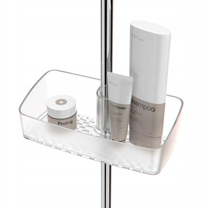 Ця практична полиця ідеально підходить для зберігання мила та косметики в душі. Його перфороване дно ефективно відводить вологу, забезпечуючи суху та чисту поверхню. Крім того, завдяки швидкому та надійному кріпленню полицю можна легко встановити на душові штанги різного діаметру.