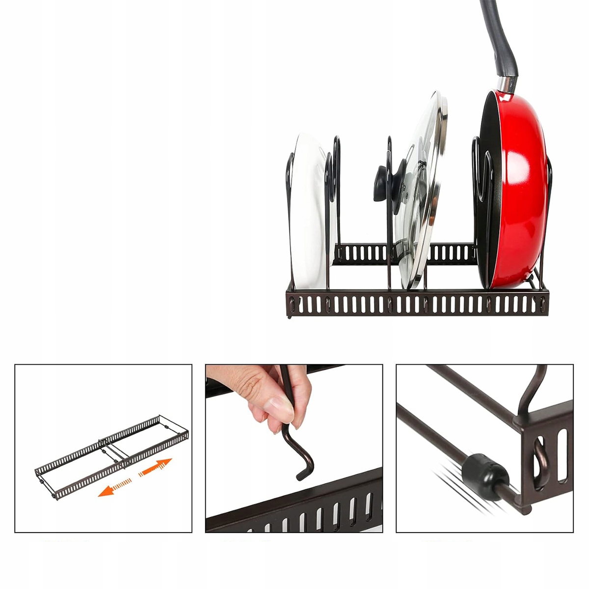 Регульована ручка горщика, зберігання, кришка, горщик з 10 відділеннями, металева ручка, зберігання на кухні, на кришках, каструлях, організатор для горщиків (чорний)