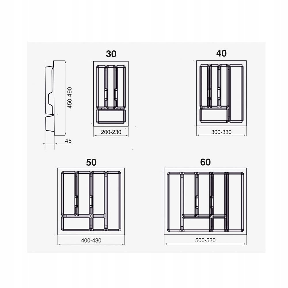 ОРГАНІЗАТОР ВСТАВКА ДЛЯ СТОЛОВОГО ПРИБОРУ ДЛЯ ЯЩИКА 50 СІРИЙ