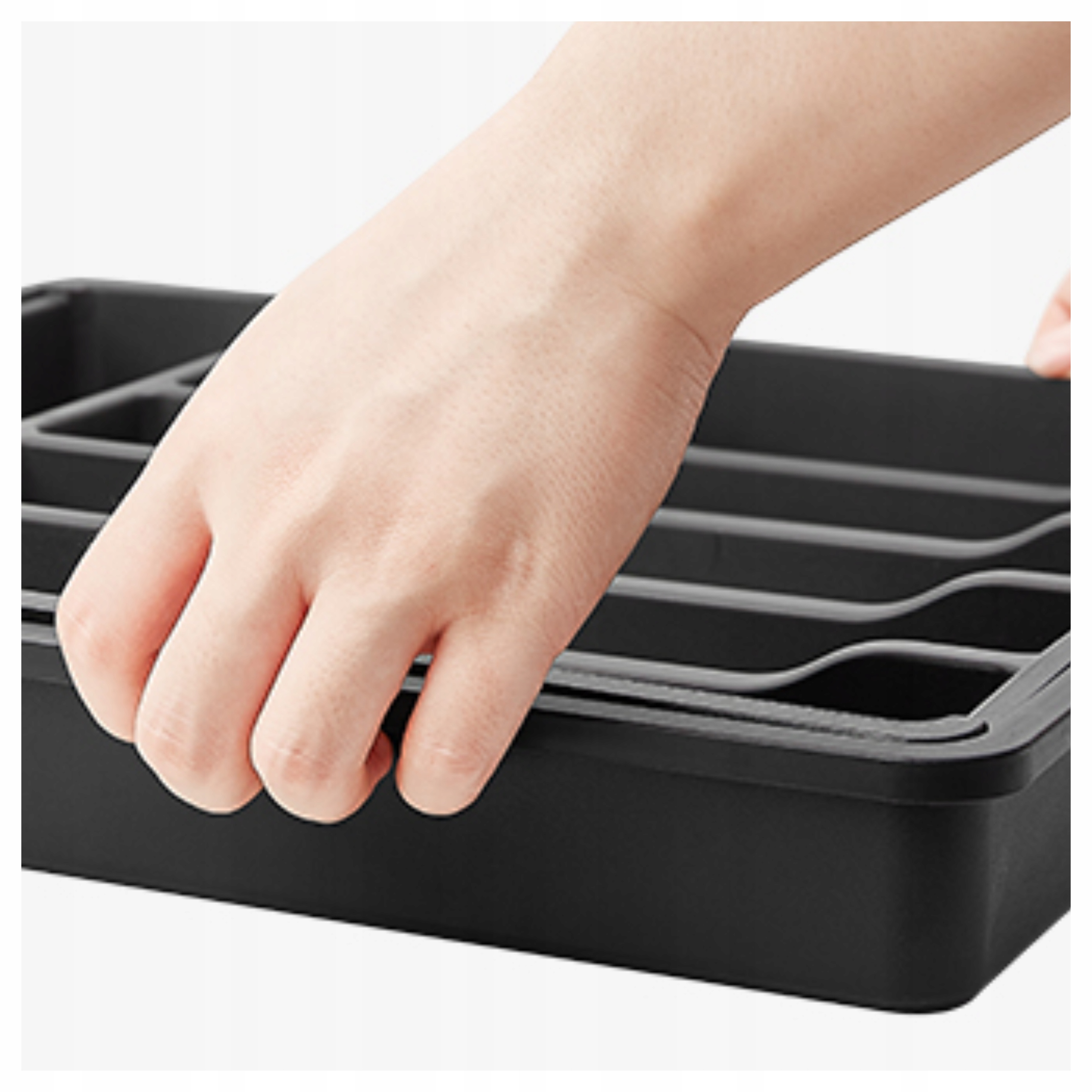 Спеціальна конструкція країв дозволяє легко та зручно переносити органайзер, навіть коли він заповнений. Ви можете легко вийняти його з ящика, щоб переставити або почистити. Це практичне рішення, яке полегшує щоденне використання.
