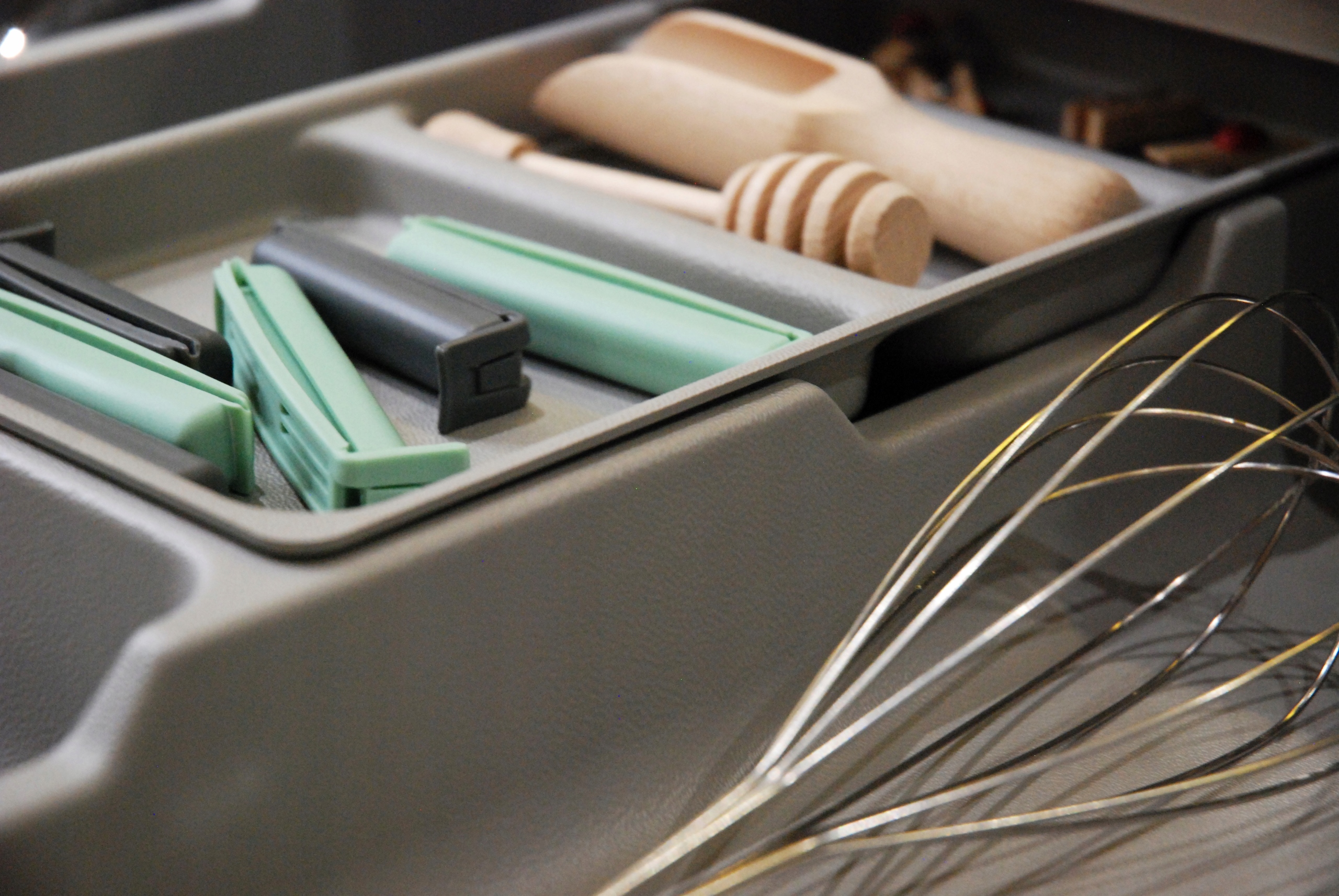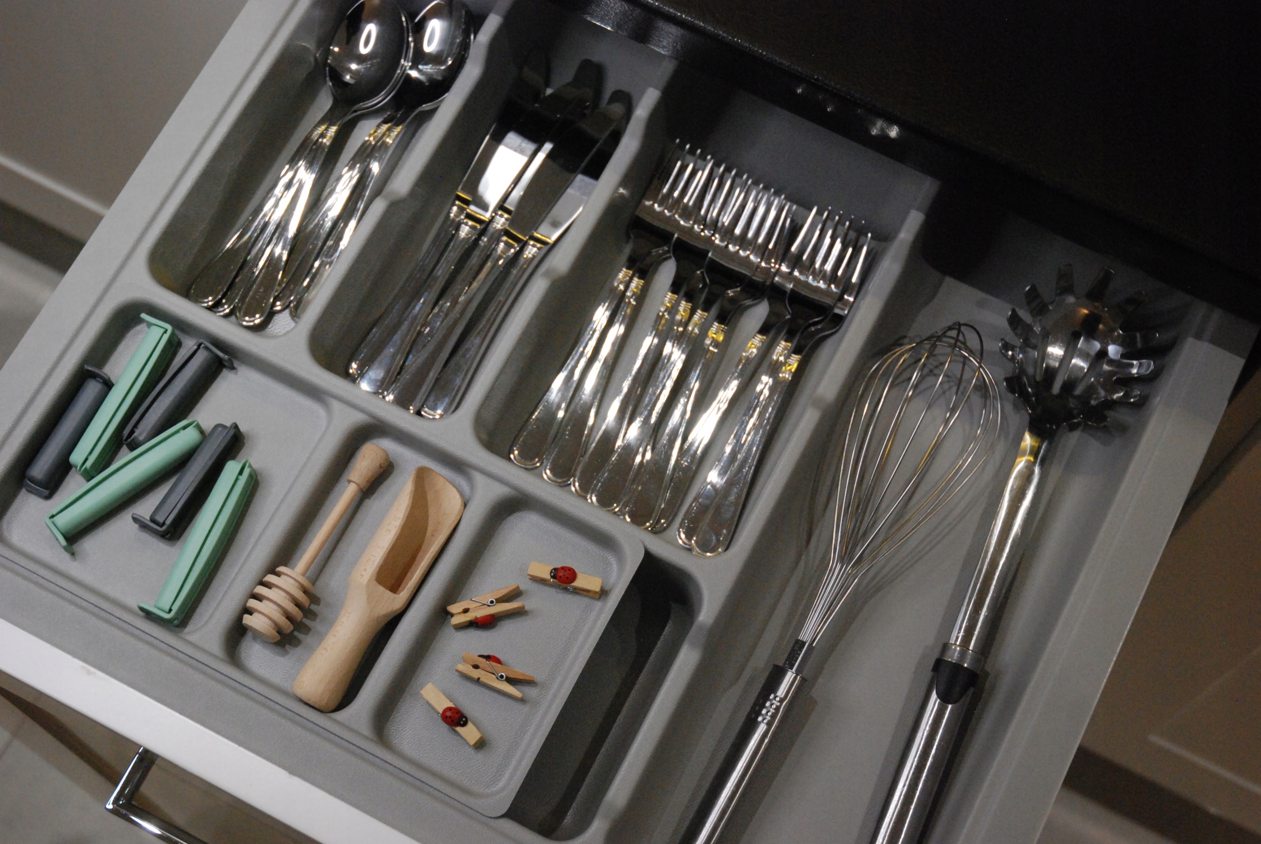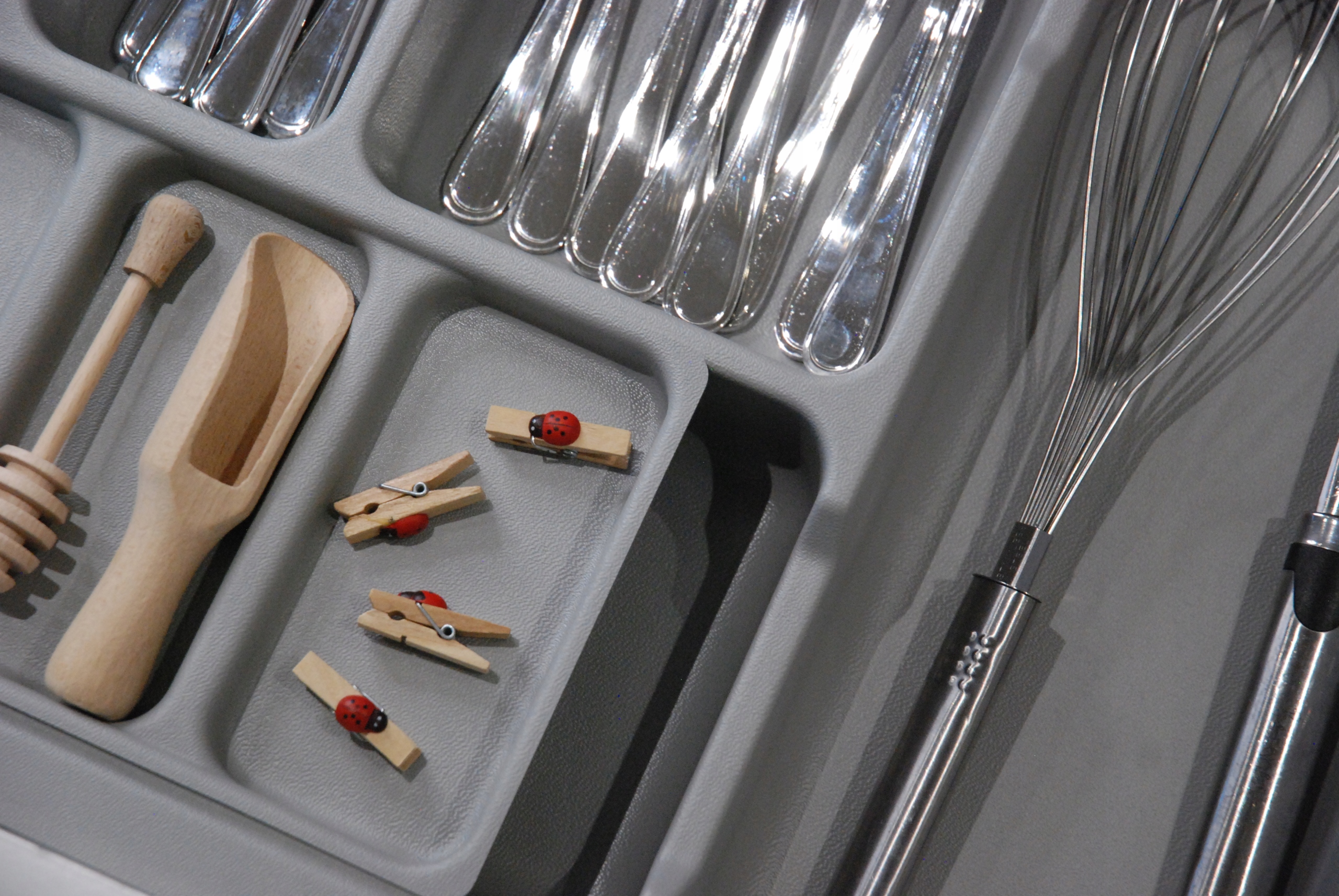 Завдяки довгим і широким камерам у внеску ви будете розміщувати не тільки стандартні столові прибори, але й інші домашні аксесуари. Додатковий мобільний наклад, який можна розмістити в трьох різних місцях вставці, дає додаткове місце для зберігання невеликих аксесуарів.