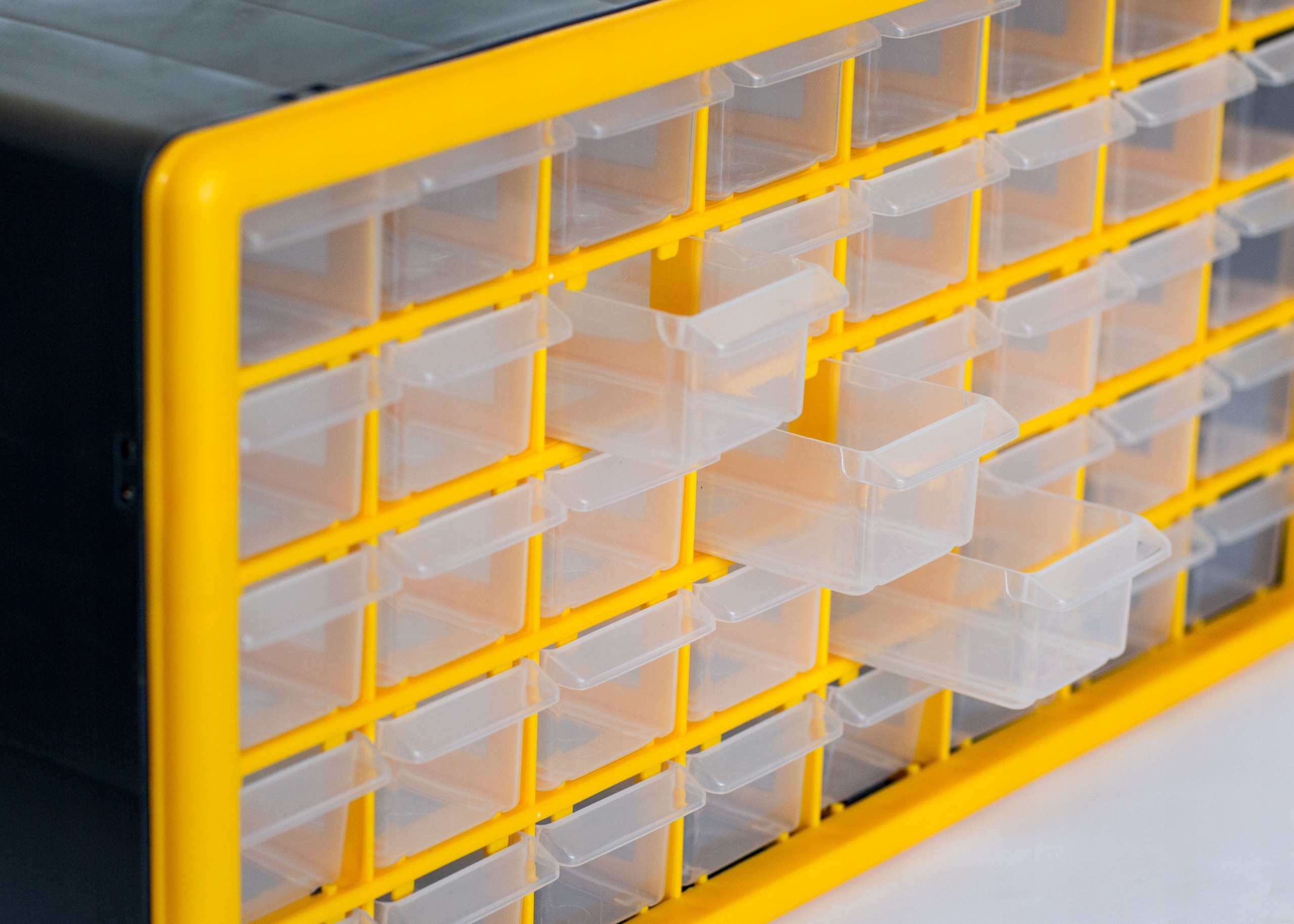 - Має 40 прозорих ящиків, розміщених у міцній пластиковій рамі. Ви можете легко побачити, що всередині.