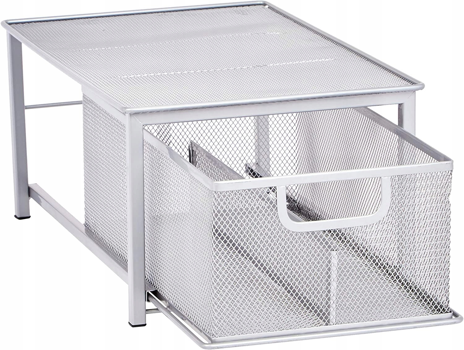 Основні основи Amazon висувна організатор кошики для ящиків з полицею, срібло