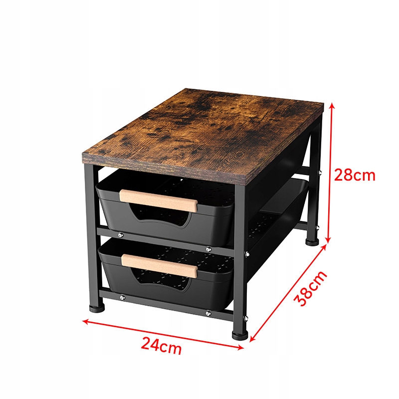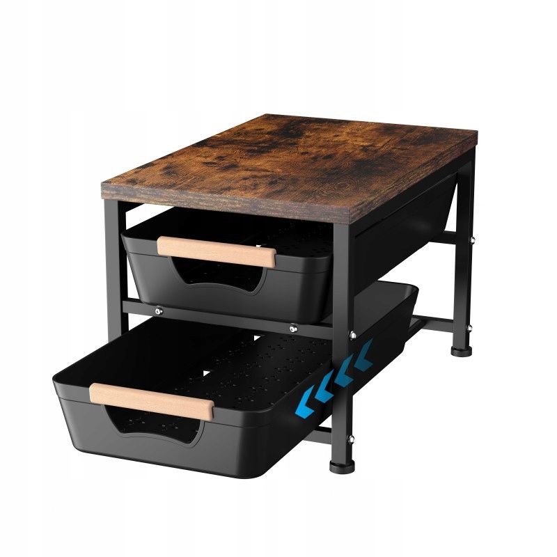 Зберігайте свій стіл у порядку завдяки сучасному органайзеру з дерев’яною верхньою частиною та двома практичними ящиками. Цей стильний органайзер поєднує в собі індустріальний дизайн із функціональністю — дерев’яна верхня частина в сільському стилі ідеально поєднується з чорною сталевою рамою та пластиковими висувними ящиками з дерев’яними ручками.