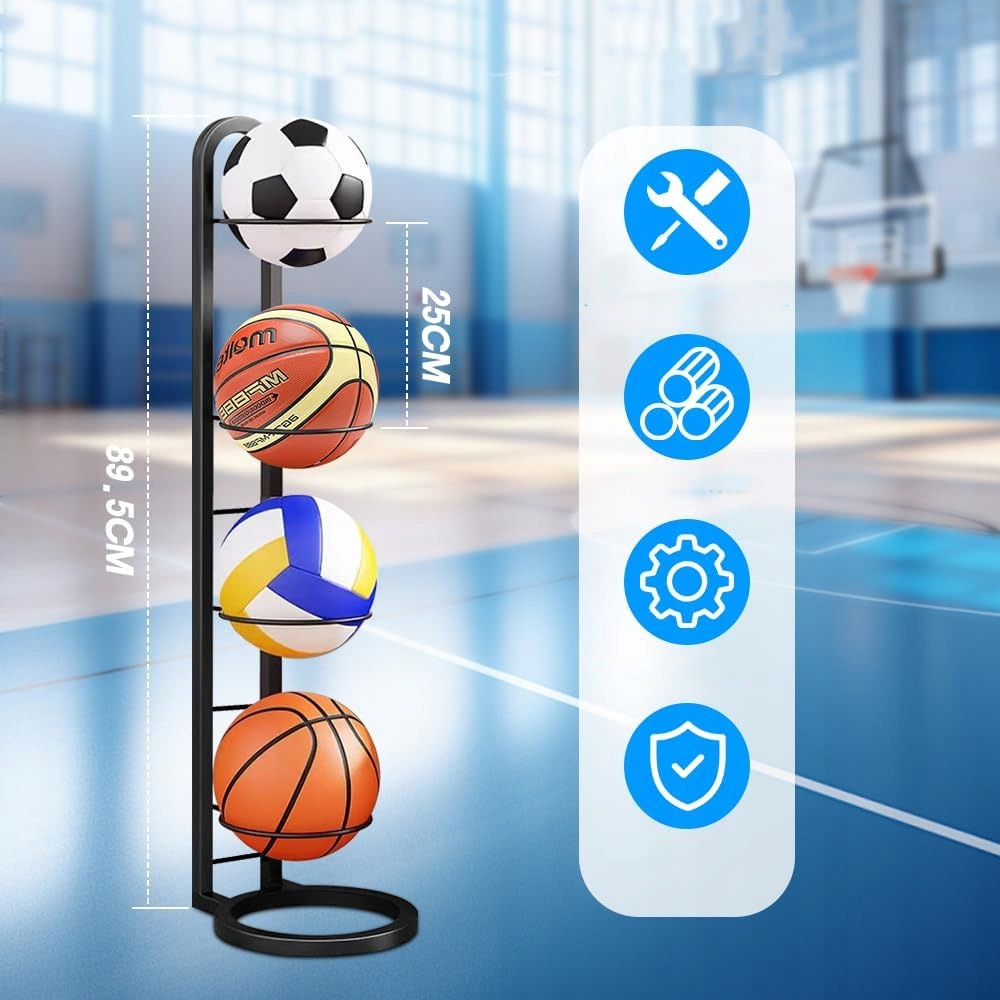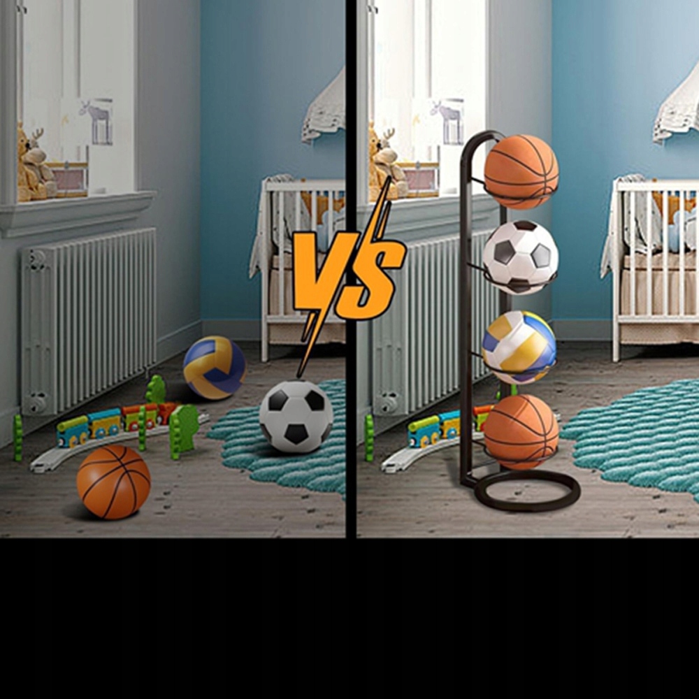 ✅ Ви можете повісити його на стіну або поставити на підлогу. У ньому є 4 полиці, які дозволяють організовувати баскетбольні м'ячі, футбольні та волейбольні м'ячі.