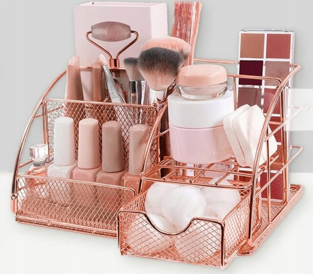 Organizer na biurko z 6 przegródkami szufladą pojemnikiem na ołówki, różowy