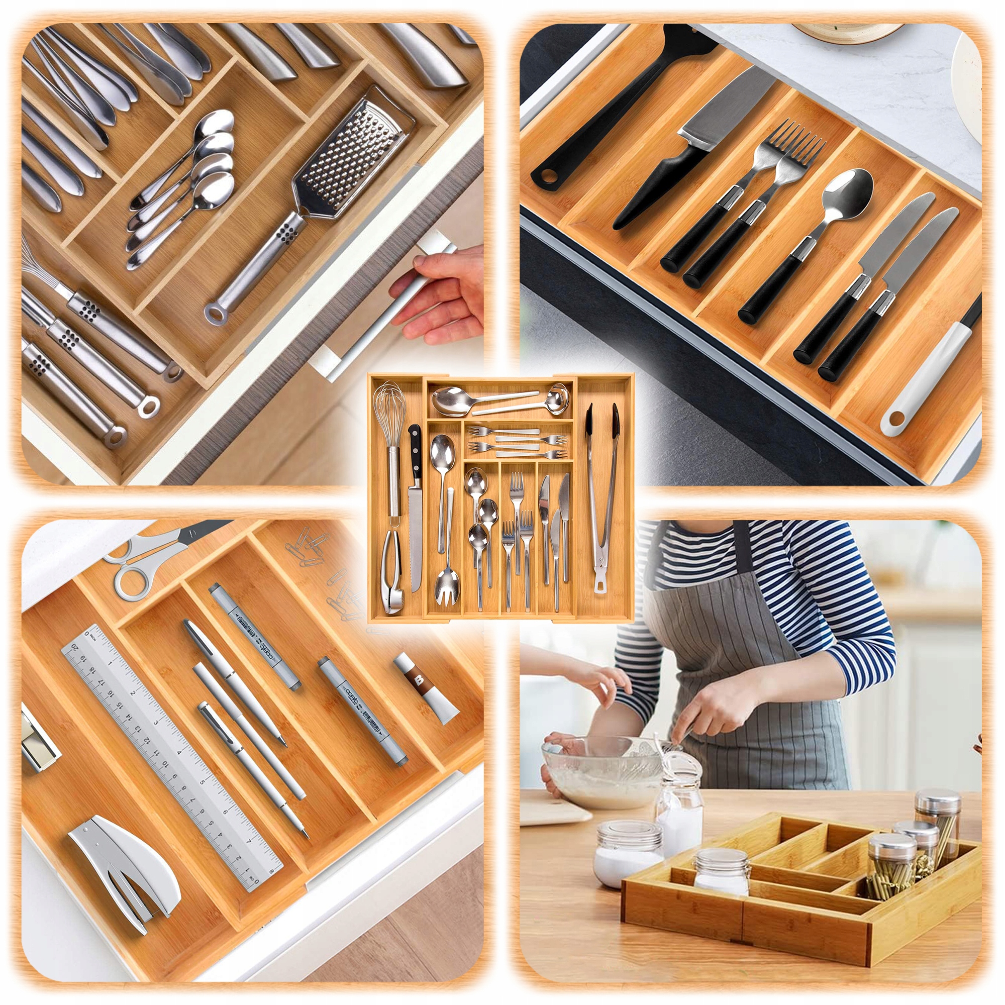 вставка orgaznier для столових приборів для ящика з бамбука, регульована розширена велика