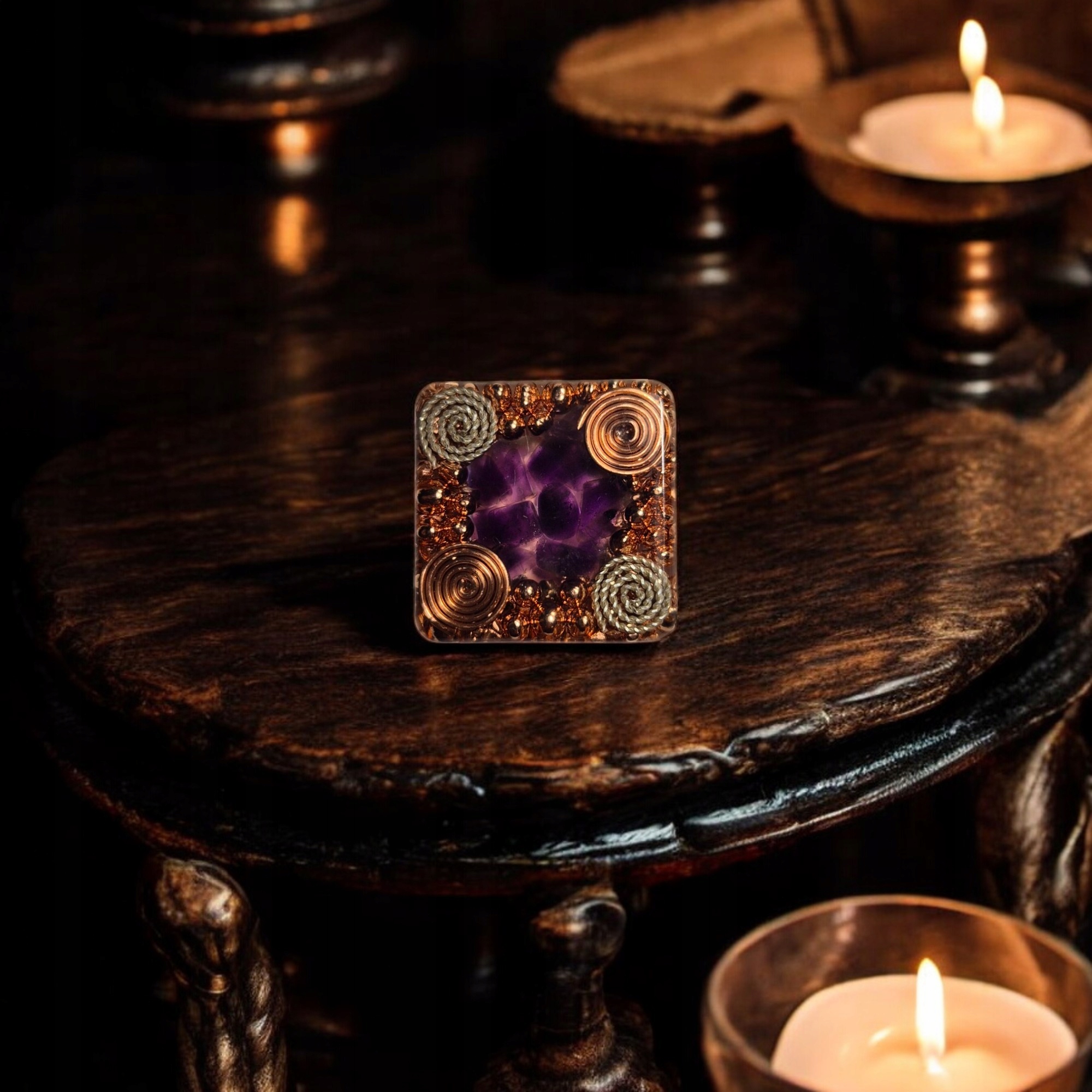 ефективно зменшує шкідливе електромагнітне випромінювання. Він відкривається на більш високі рівні свідомості та підтримує духовний розвиток. Аметист резонує Crown Chakra (фіолетовий), поєднуючи з більшою енергією та натхненням. Простіший потік енергії, діє як захисний щит проти електромагнітного випромінювання. 4 Його унікальне розташування гарантує максимальну ефективність: з боку пристрою відповідно до руху за годинниковою стрілкою для перетворення енергії в нейтральну форму, а ззовні навпаки до руху вказівок годин, що ще більше зміцнює ефект очищення та виключає негатив енергія>