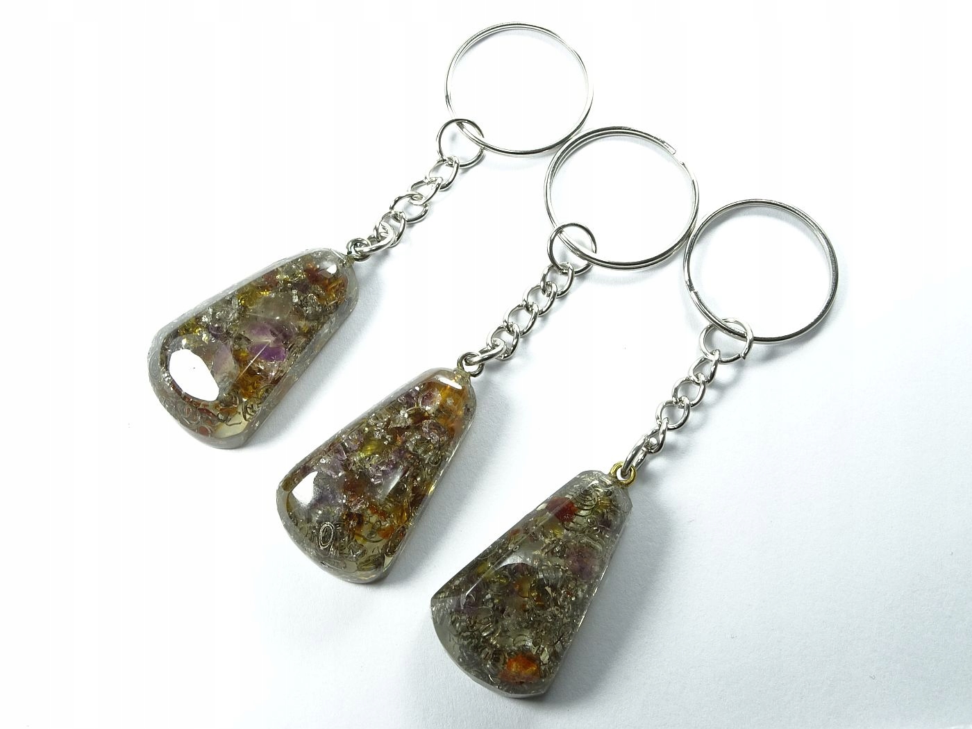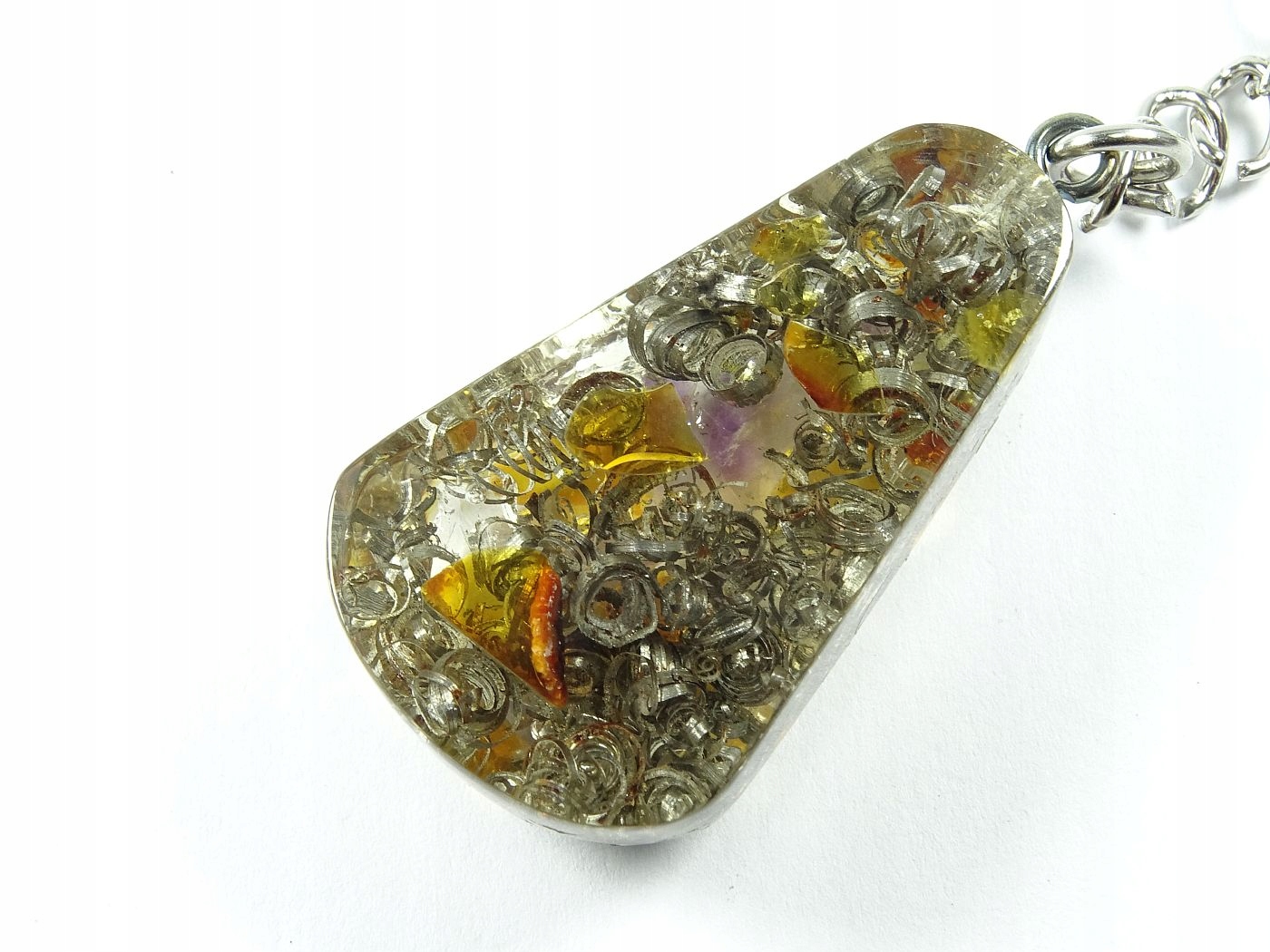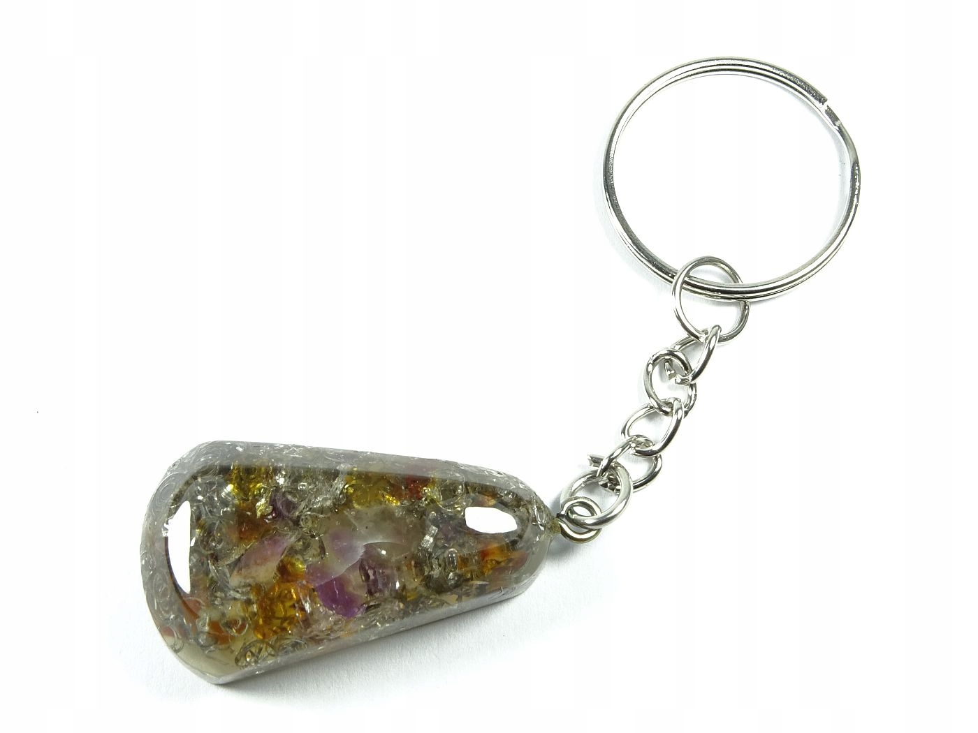 Оргонітовий брелок з аметистом і бурштином як домінуючим мінералом.