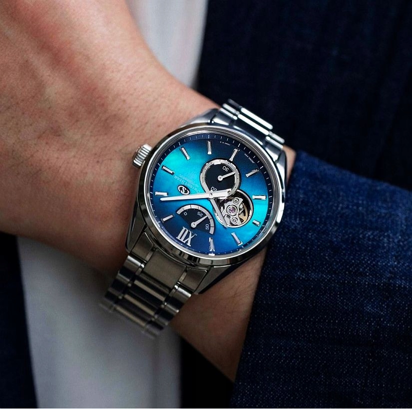 Годинник Orient Star RE-BY0004A00B — нова чоловіча модель з колекції M34 F7 Semi Skeleton. Елегантний годинник із привабливим дизайном із блакитним перламутровим циферблатом, індикатором запасу ходу та автоматичним механізмом. Ідеально підходить для чоловіків, які цінують японську точність, якість виготовлення та універсальний стиль, ідеально підходить для щоденного використання та для більш офіційних випадків.