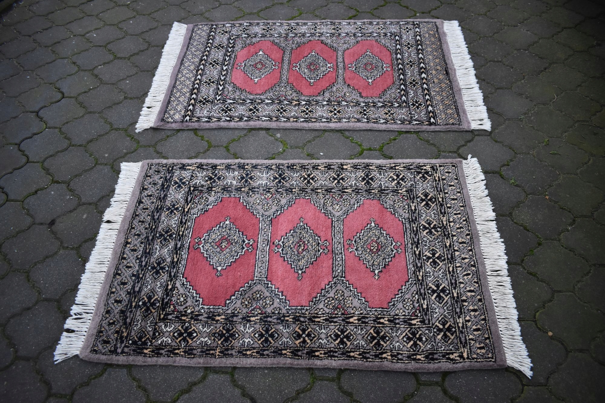 На наступному аукціоні я пропоную вам східний, виготовлений з найякіснішої вовни, складного ручного плетення - оригінальний пакистанський комплект два бухарських килима