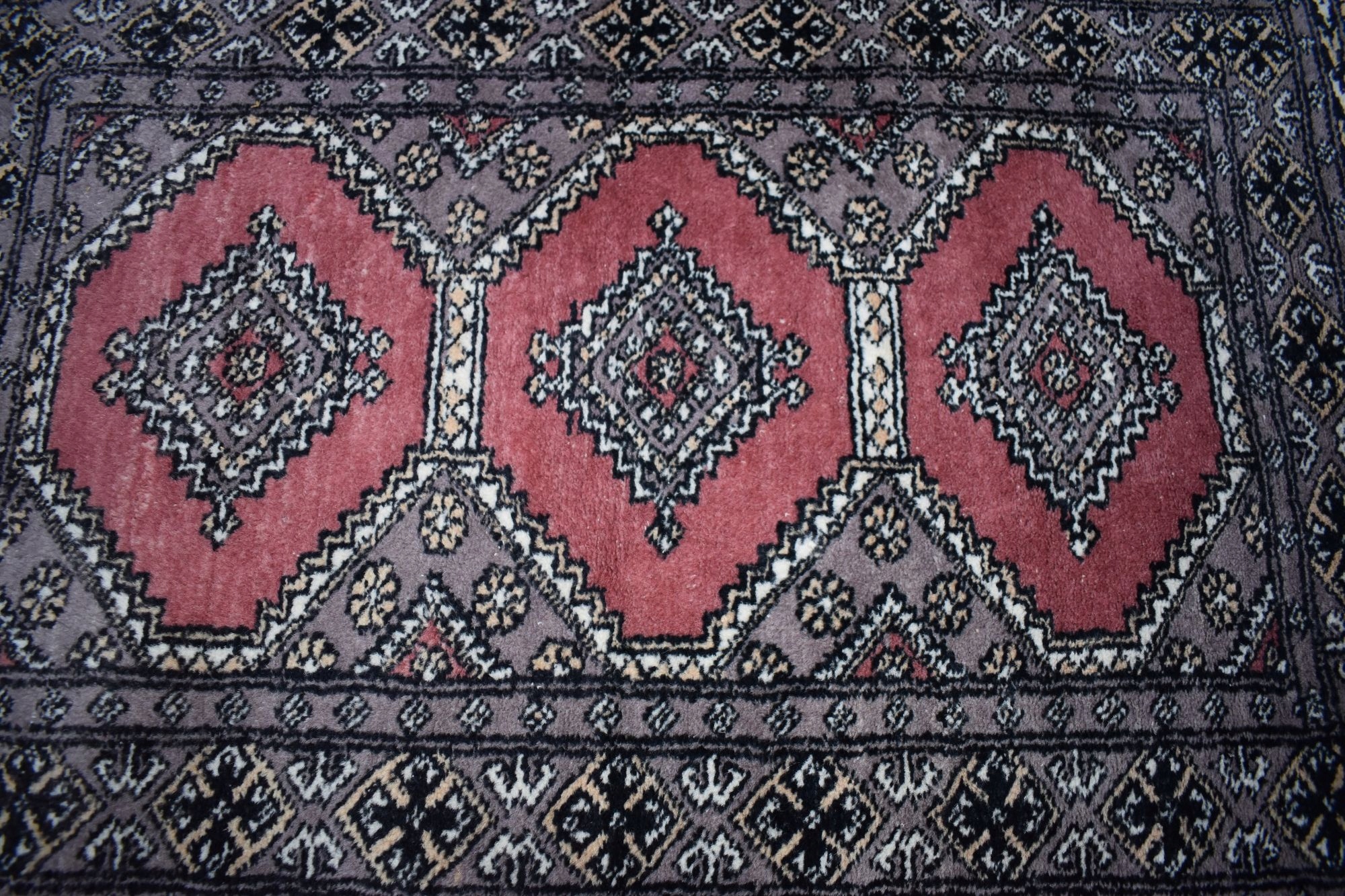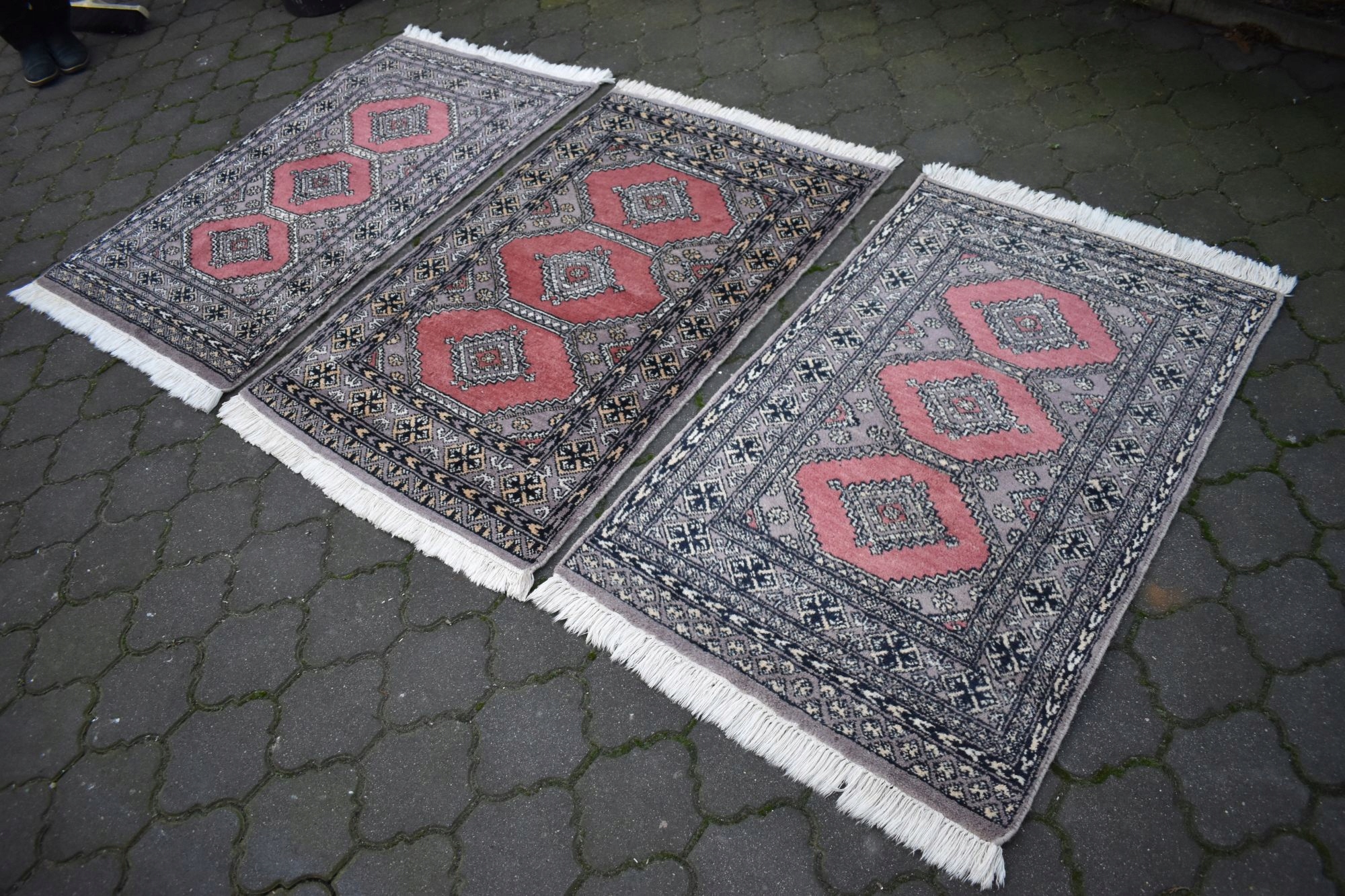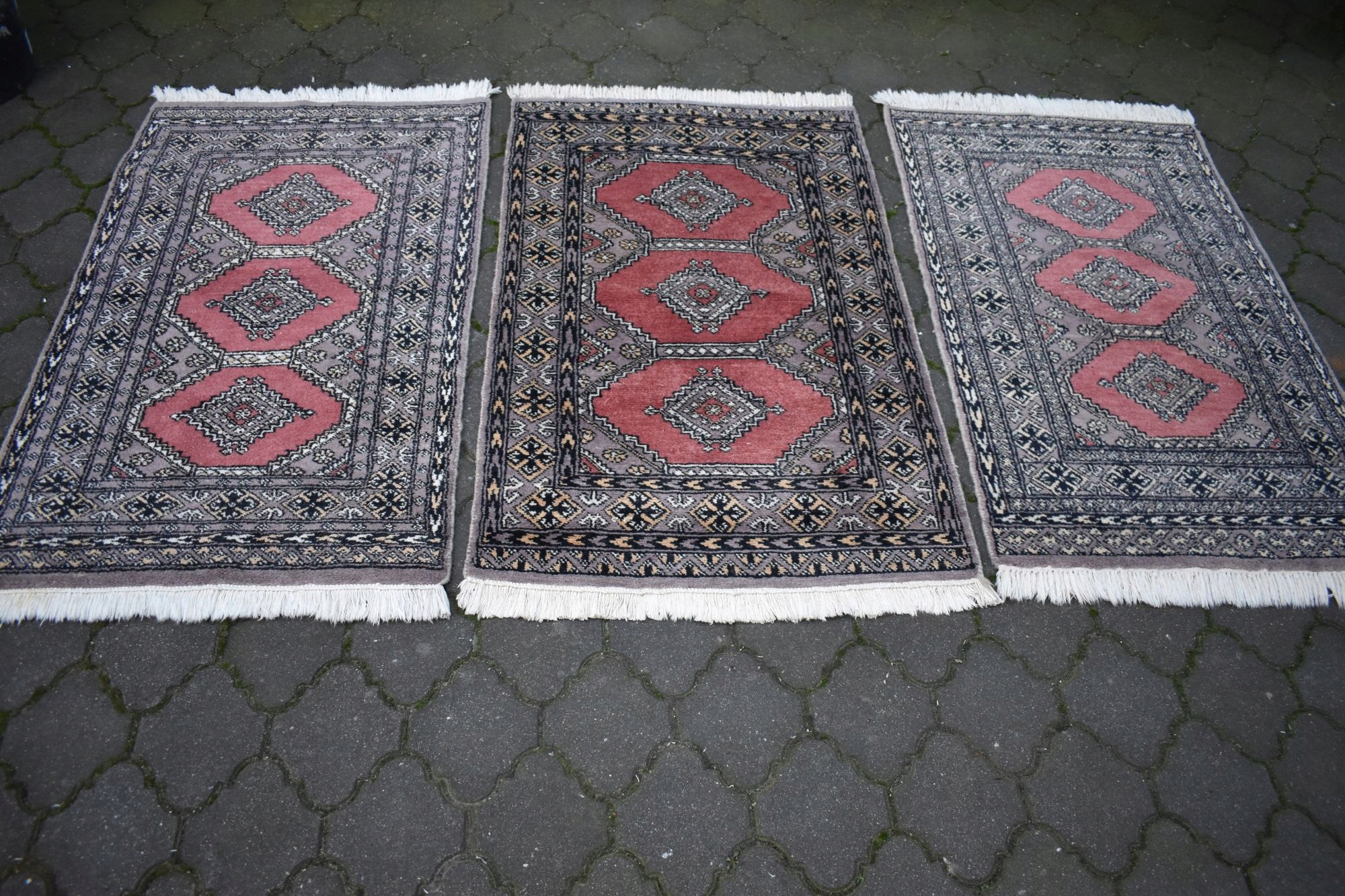 На наступному аукціоні я пропоную вам східний, виготовлений з найякіснішої вовни, складного ручного плетення - оригінальний пакистанський комплект три бухарські килими
