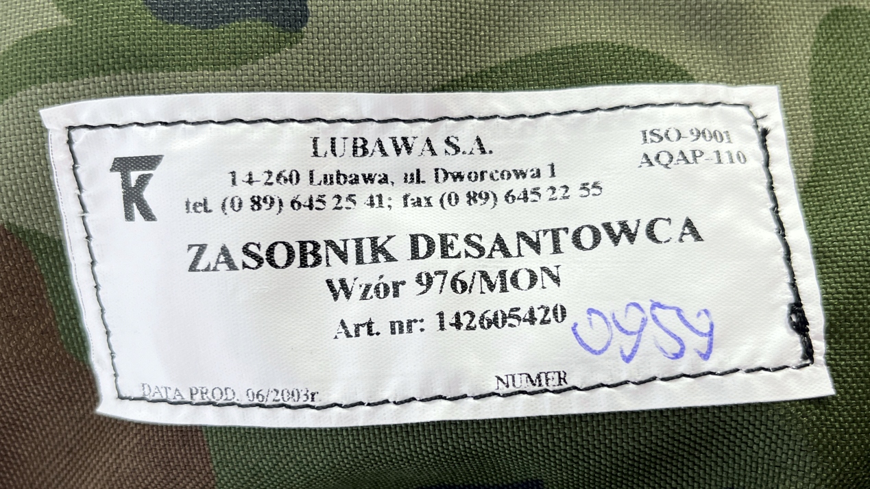 Рюкзак з одним відділенням у лісовому камуфляжі. 93 виготовлений для потреб Війська Польського, призначений для повітряно-десантних військ.