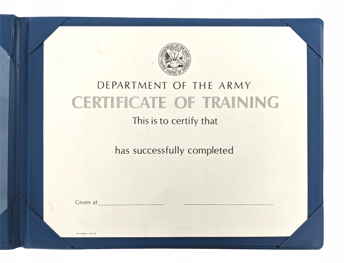 ориг. Свідоцтво про навчання АРМІЇ США (ВПС).