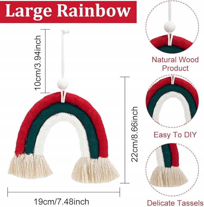 - Різдвяна прикраса: прикраса веселки стане чудовим доповненням до ваших різдвяних прикрас цього року. Ялинні кольори веселки додадуть колір вашій ялинці, а унікальний малюнок макрами зробить її виділенням з натовпу. Поширюйте різдвяну радість, використовуючи цей смішний та святковий набір.