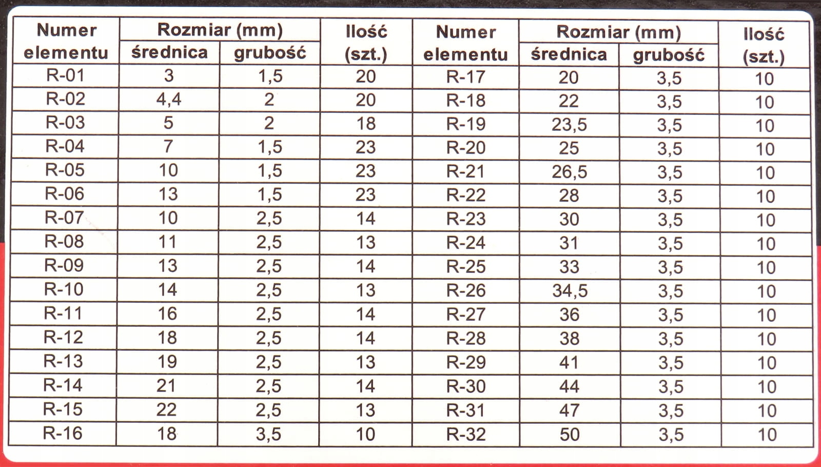 Елемент № Внутрішній діаметр. Czech diameter Quantity