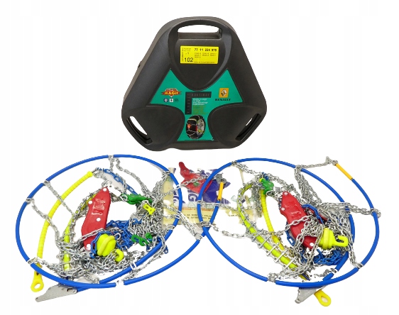 Ланцюги протиковзання з автоматичним натягувачем і системою легкого розбирання. - Система розбирання TOS (система знімання): просто потягніть за ручку. - Мікрометричний механізм натягування ASTS (удосконалена система самонатягування): автоматичний натяг, не вимагає жодних дій частина користувача .- Під час їзди зовнішній ланцюг автоматично натягується на храповому механізмі - Лише 9 мм внутрішнього люфту завдяки коротким тонким ланкам - Нова зчіпка з автоматичним блокуючим механізмом, ідеально підходить до алюмінієвих колісних ободів. - Невеликий водонепроникний килимок для встановлення ланцюга. - Ламіновані інструкції з монтажу. - Захисні рукавички. - Запасні ланки для ремонту. - Схвалення TUV. - Сумісність розміру ланцюга/шини: зверніться до авторизованого дилера Renault.