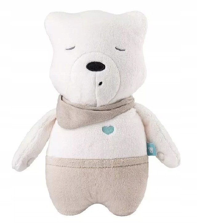Білий звук, що нагадує звук сушарки, шум з нижчими частотами - Рожевий шум, шум морських хвиль, падіння дощу та шум вод плода з побиттям серця. На плюшевого ведмедя шум повільно заспокоюється і вимикається, а ведмідь набрякає сам у режимі очікування. Коли дитина починає прокидатися, обертається або плаче, шум автоматично приєднається до нещодавно обраного звуку. Через 30 хвилин механізм знову вимкнеться і перейде в режим очікування. До 12 годин пишності, щоб зробити це маленьким, можна було спати в шум навіть уночі. експлуатується лише однією кнопкою без необхідності вийняти її з кишені.