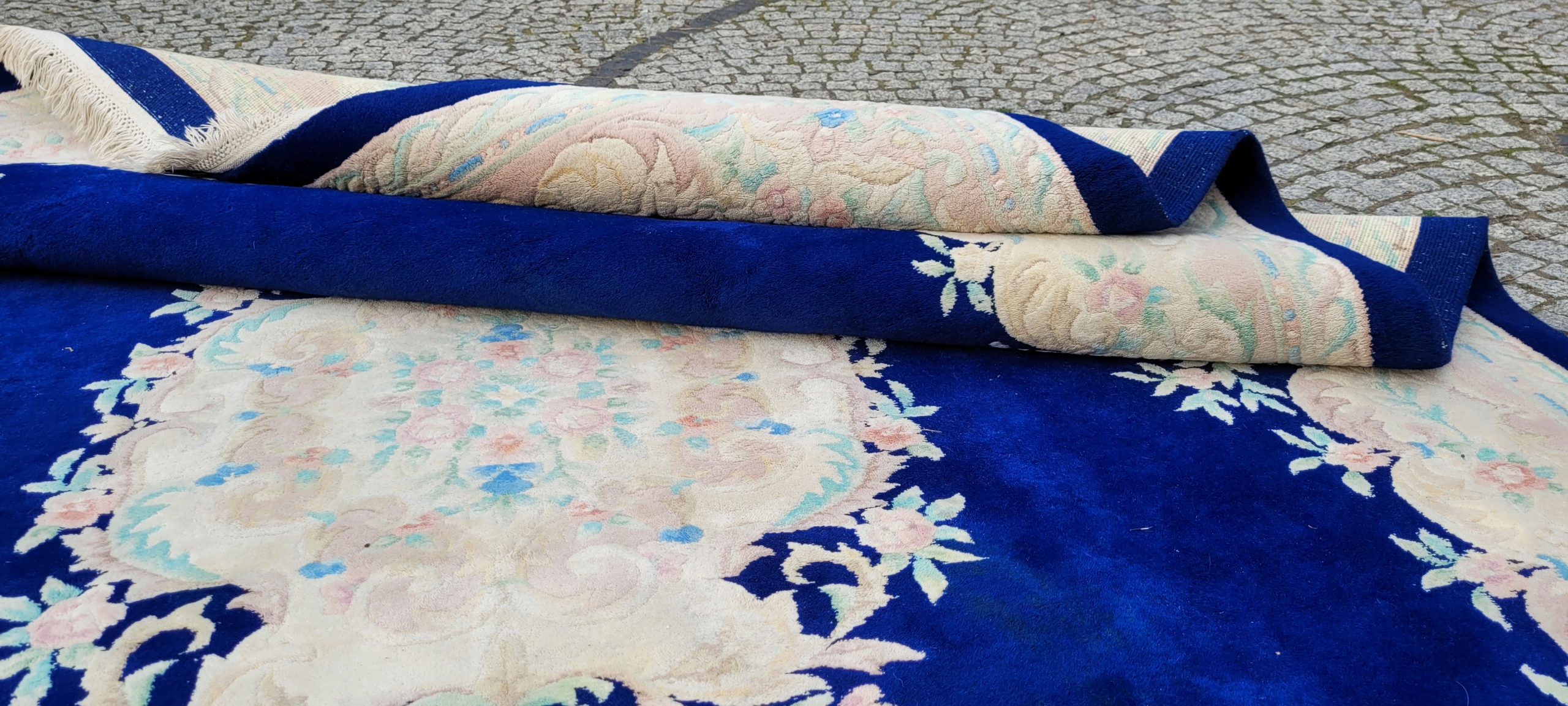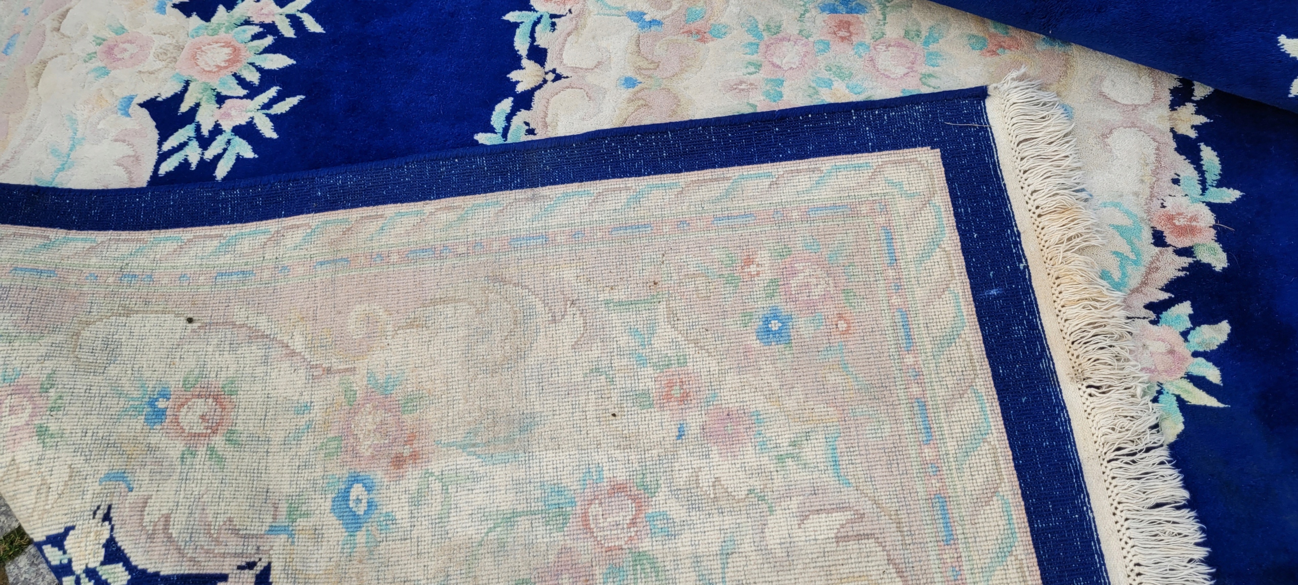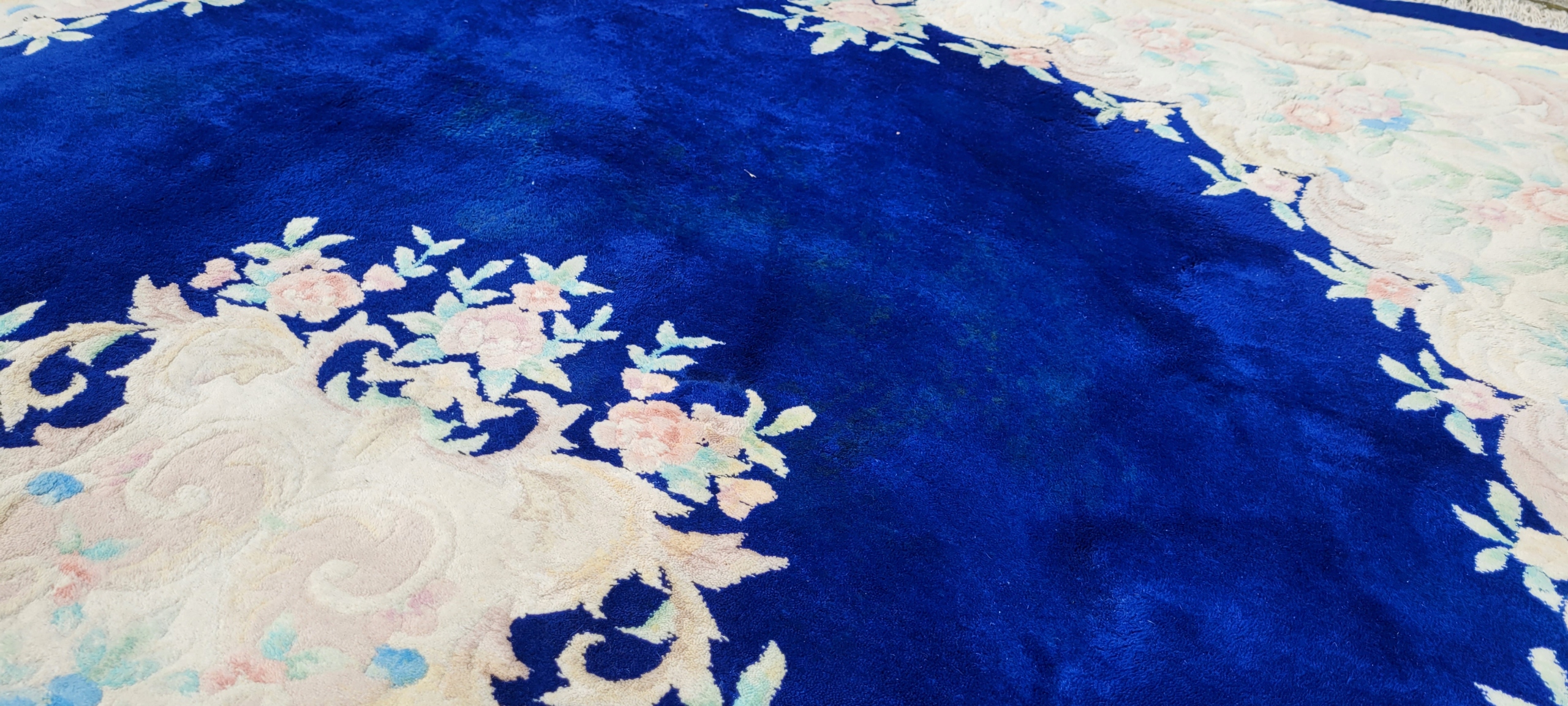 Чудовий китайський килим Aubusson. Виткана вручну з вовни найвищої якості. Надзвичайно масивний і важкий. Він характеризується компактним, блискучим флісом і красивими кольорами. Має характерні вирізи візерунка. Він у дуже хорошому стані, мінус видно на фотографіях.