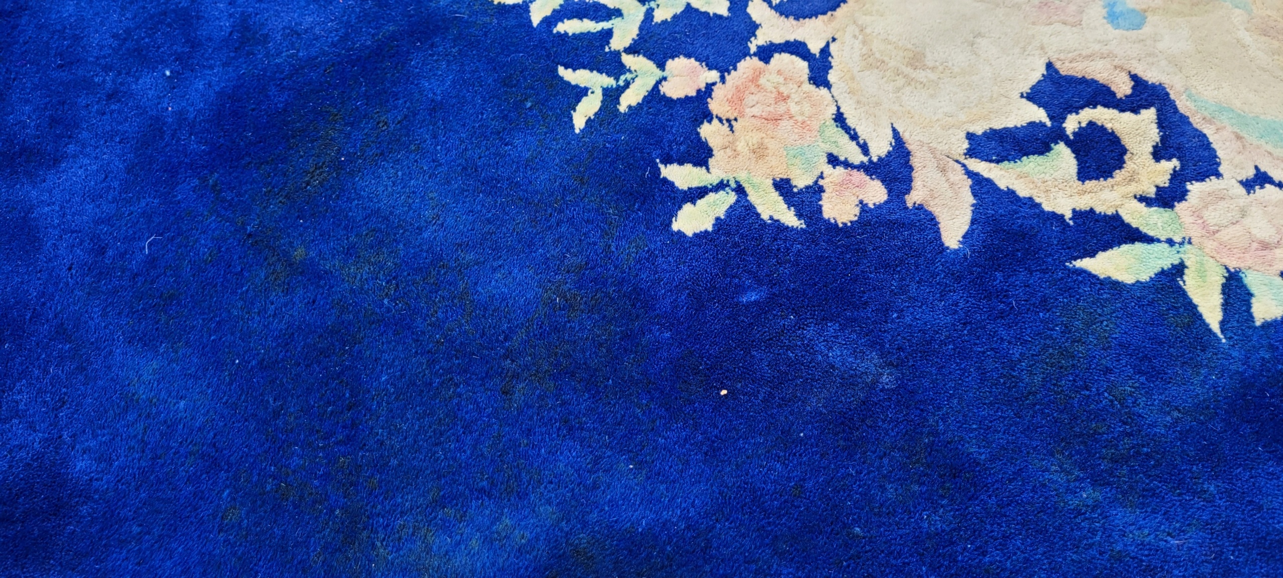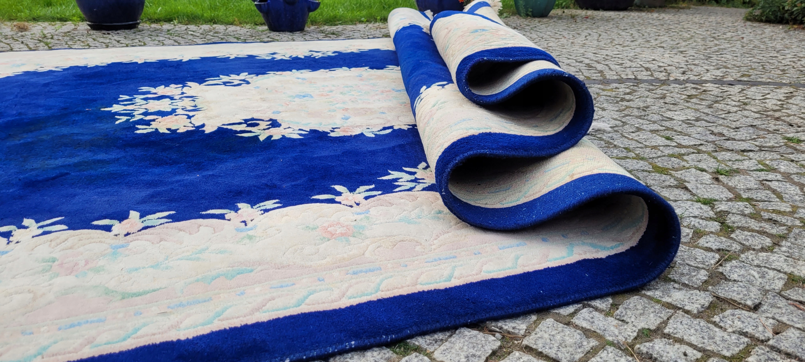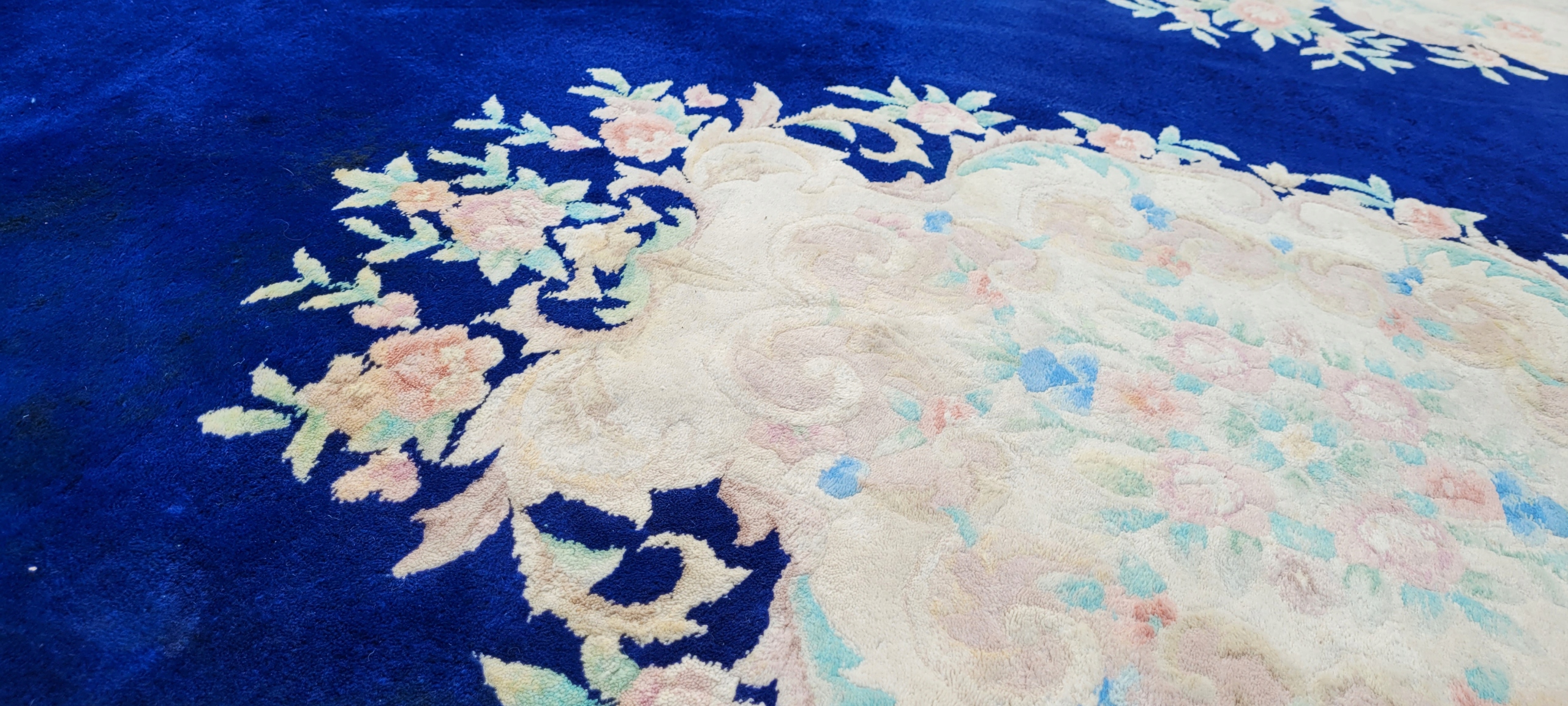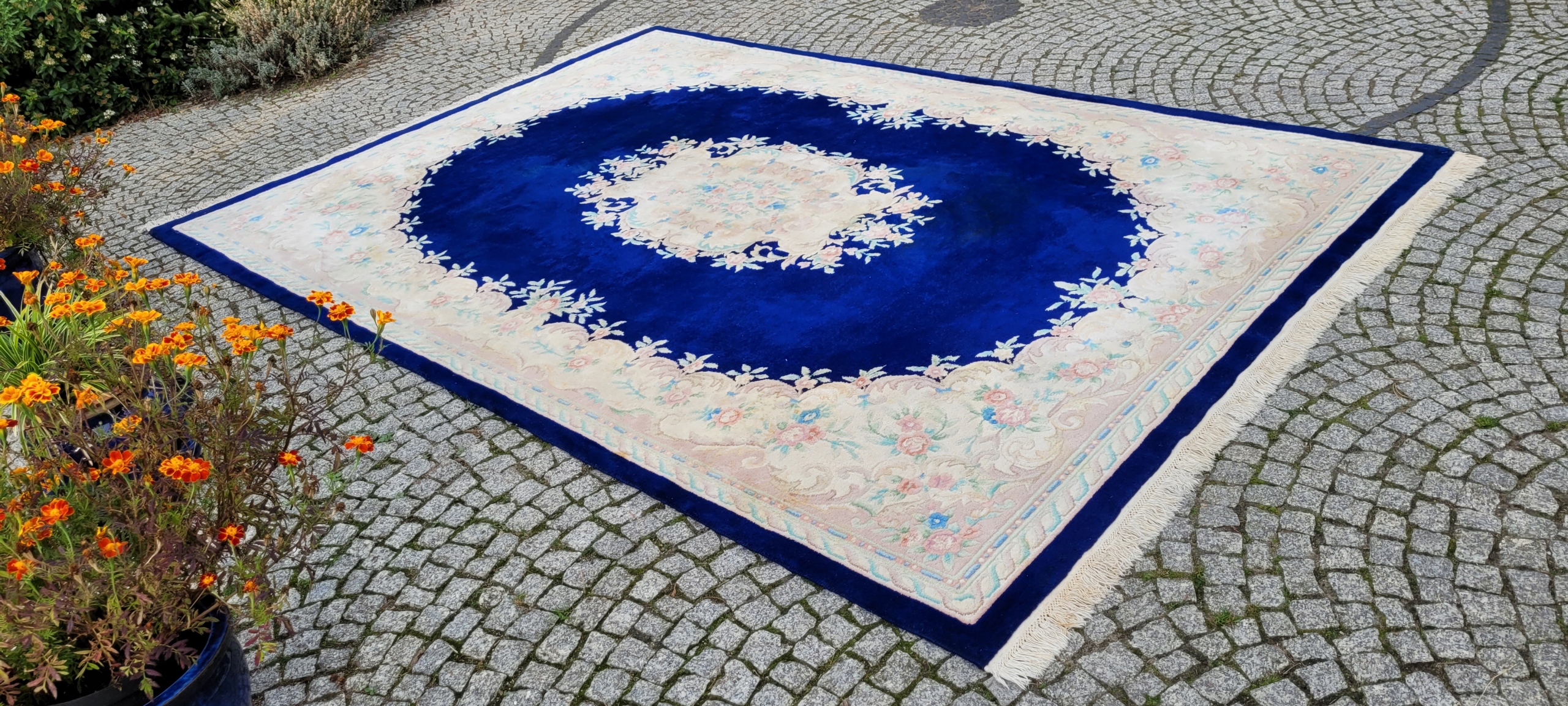 Чудовий китайський килим Aubusson. Виткана вручну з вовни найвищої якості. Надзвичайно масивний і важкий. Він характеризується компактним, блискучим флісом і красивими кольорами. Має характерні вирізи візерунка. Він у дуже хорошому стані, мінус видно на фотографіях.