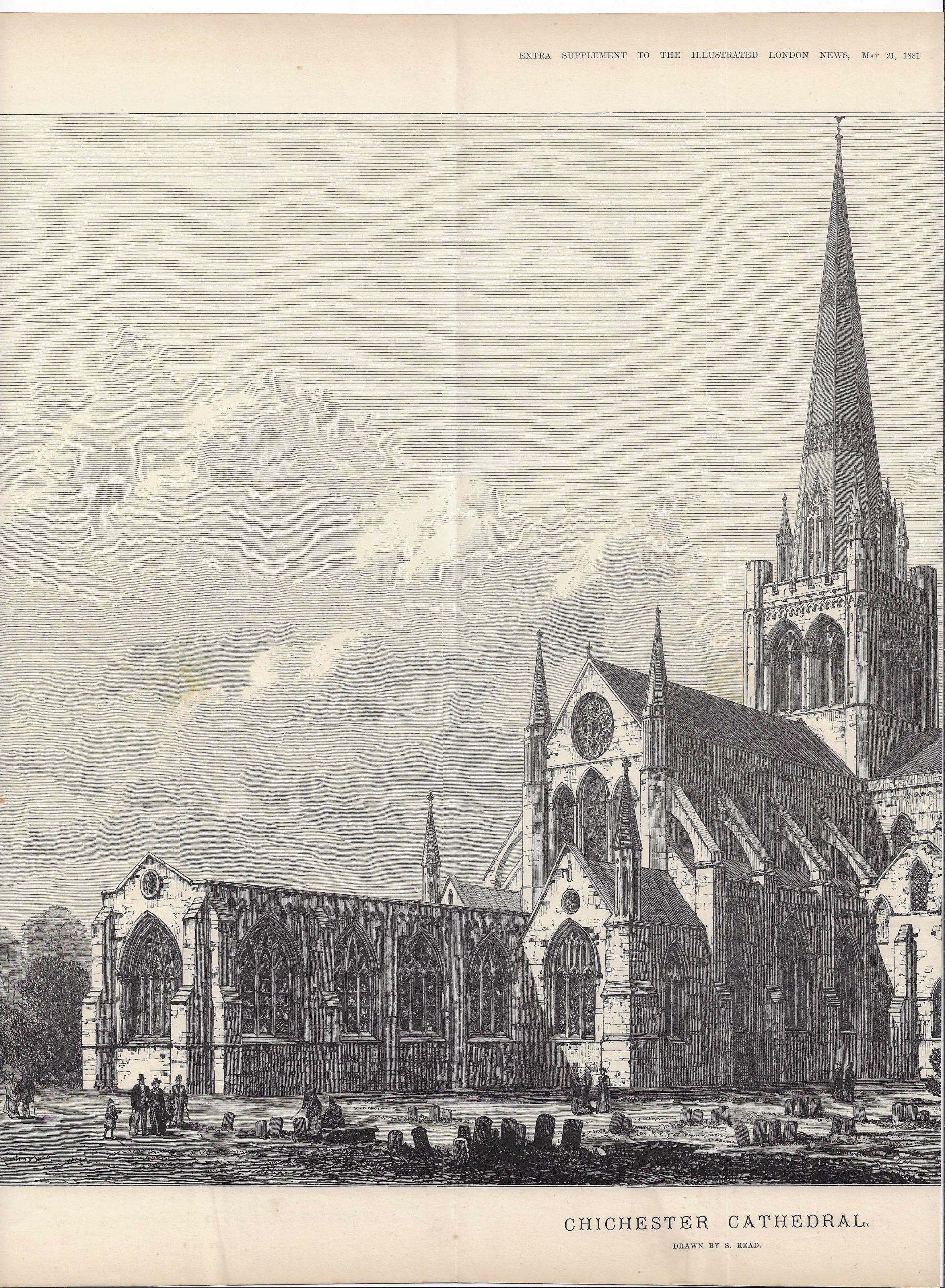 Графіка (доповнення з Ілюстрованого Лондона з 1881 року), описана англійською мовою. Назва: Собор Чічестер (у Великобританії).