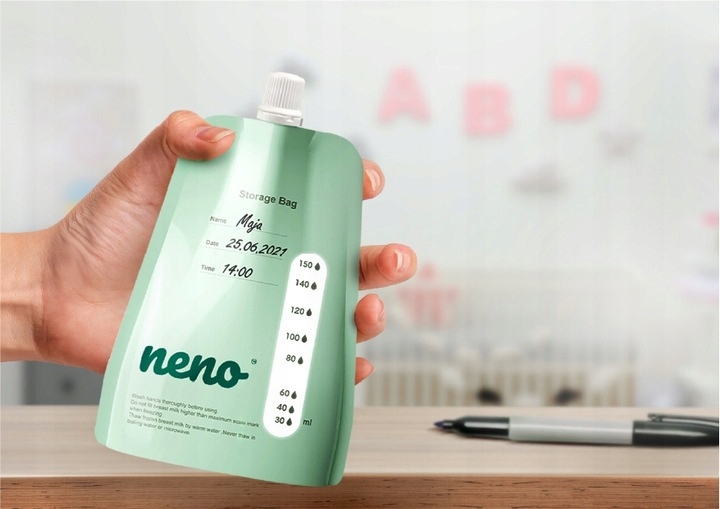 Сумка Neno - чудовий помічник у зберіганні грудного молока. Він має спеціальне місце для запису дати зціджування молока, а також часу та імені матері або її дитини. Крім того, на ньому є мірна чашка, за допомогою якої буде легше точно відміряти кількість молока, налитого в пакет.