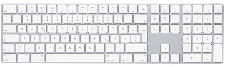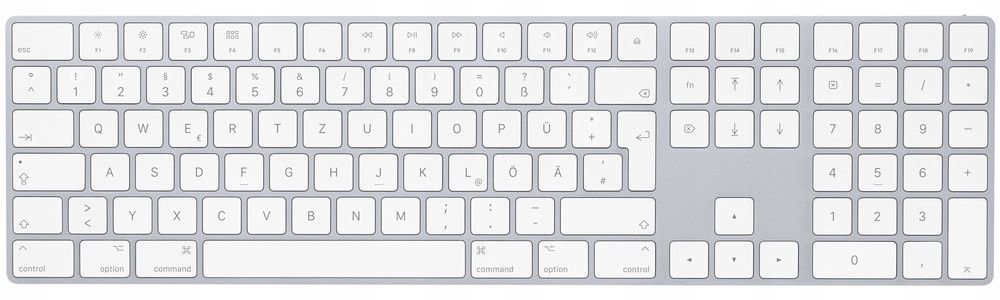 Оригінальна клавіатура Apple Magic Numery Keypad Німеччини клавіш клавіш клавіш Qwertz (Німеччина). Використовувана клавіатура, лише звичайні ознаки використання видимими.