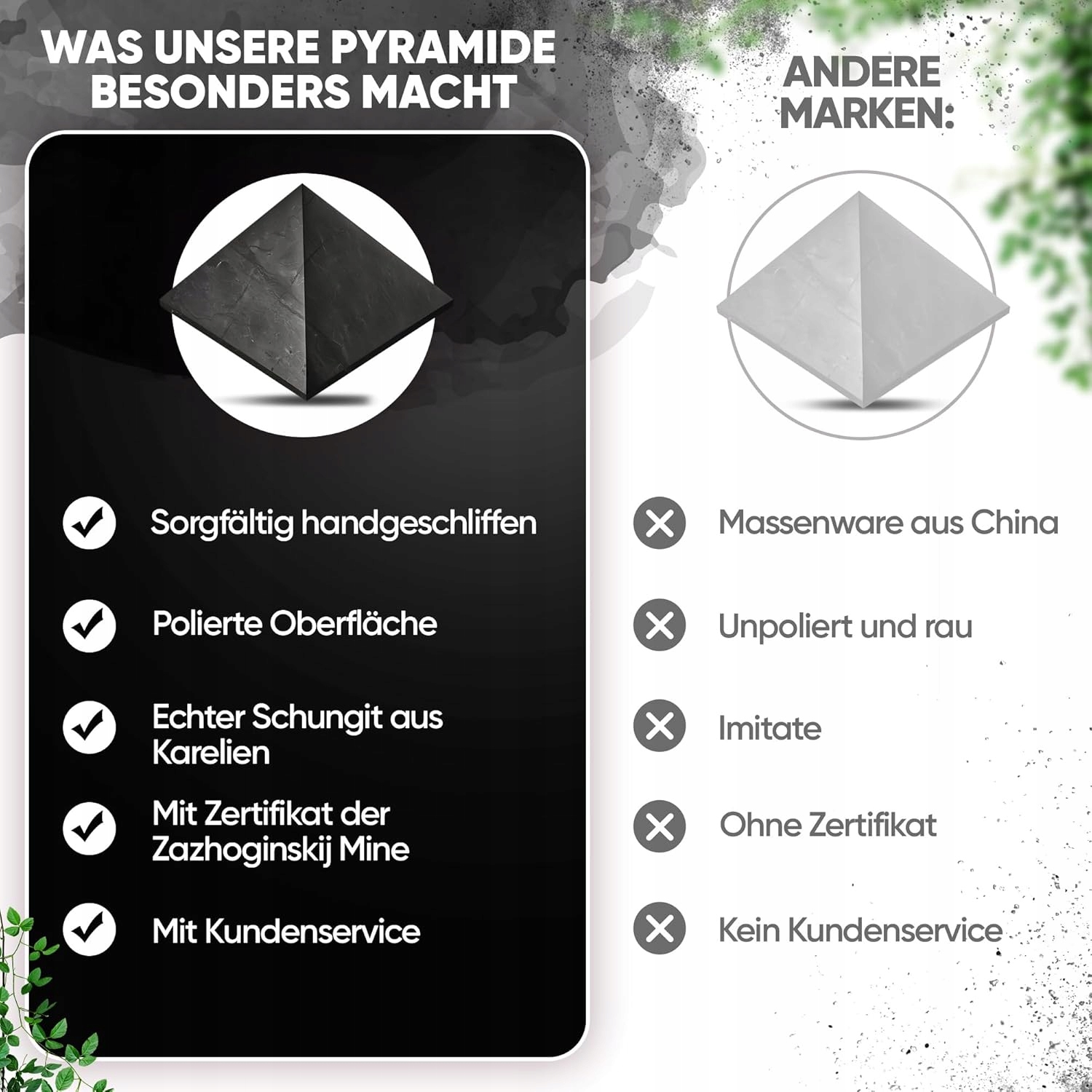 → Наша піраміда Schungit здебільшого виготовлена з вугілля. Природа робить кожну піраміду рідкісною унікальною. Автентичність Szungit можна перевірити, перевіривши його електропровідність. Події Szungit дуже обмежені і в основному вичерпані.