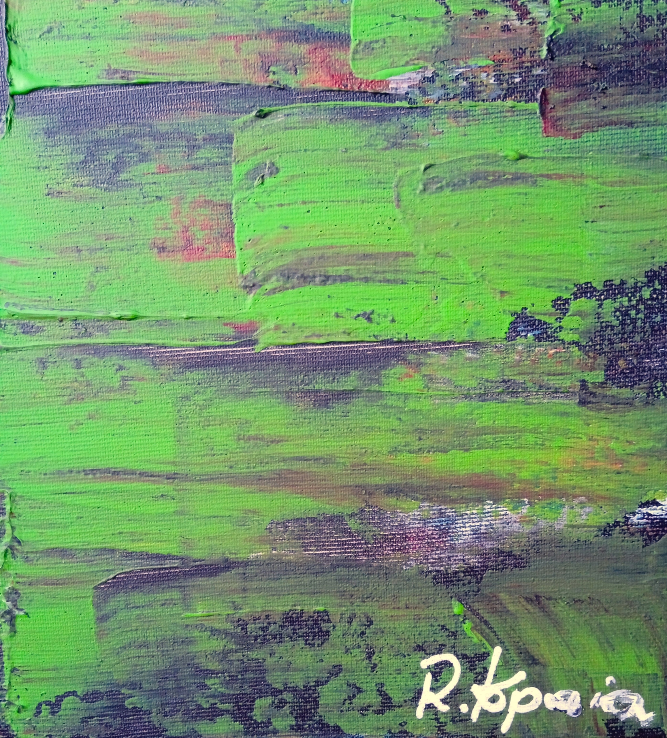 - Техніка: акрил на полотні, фарба, нанесена шпателем та пензлем