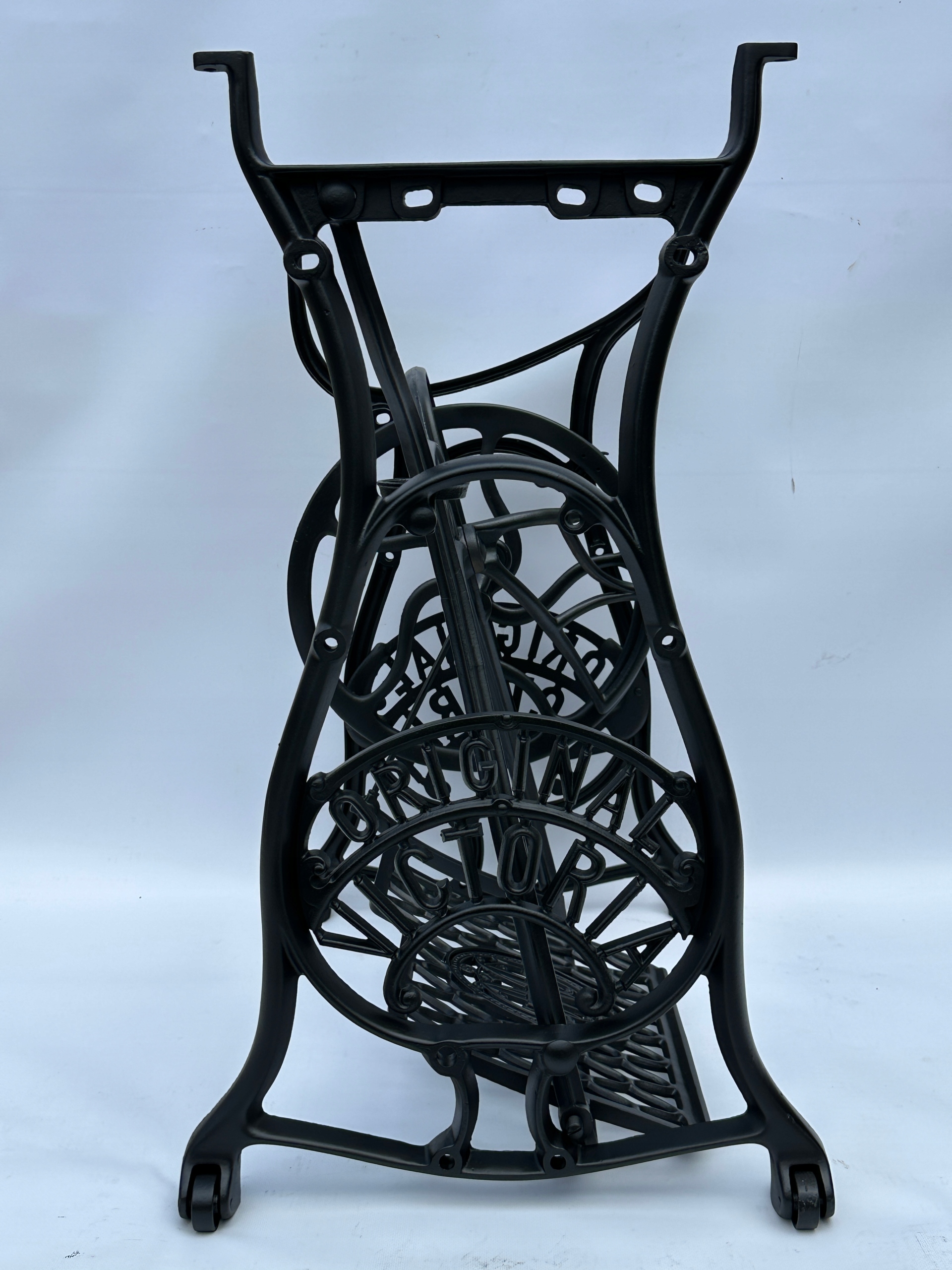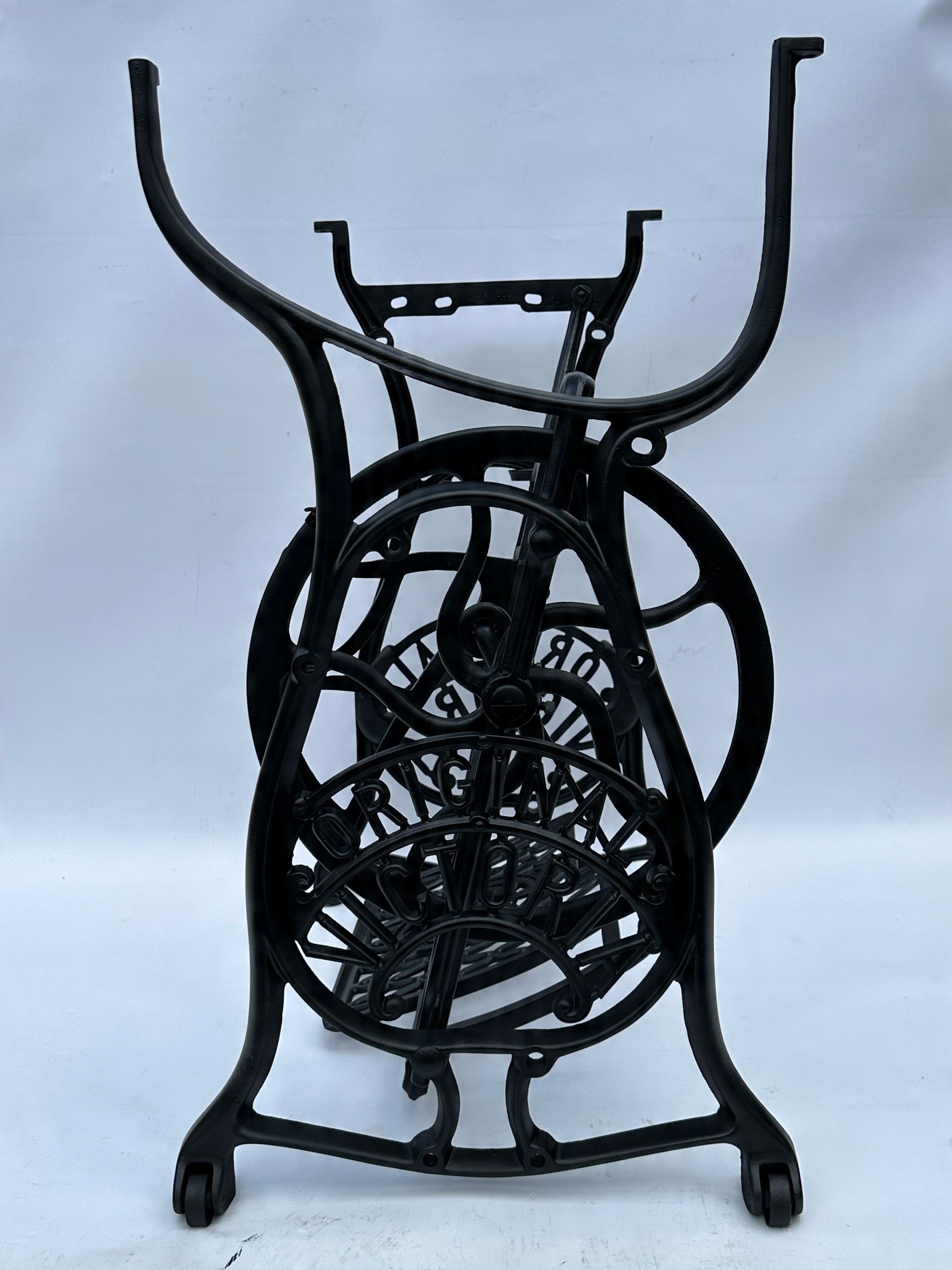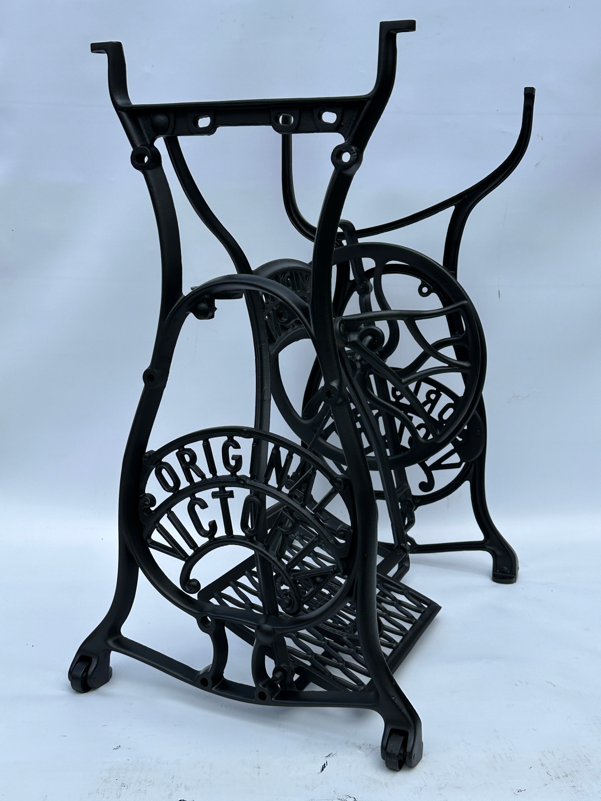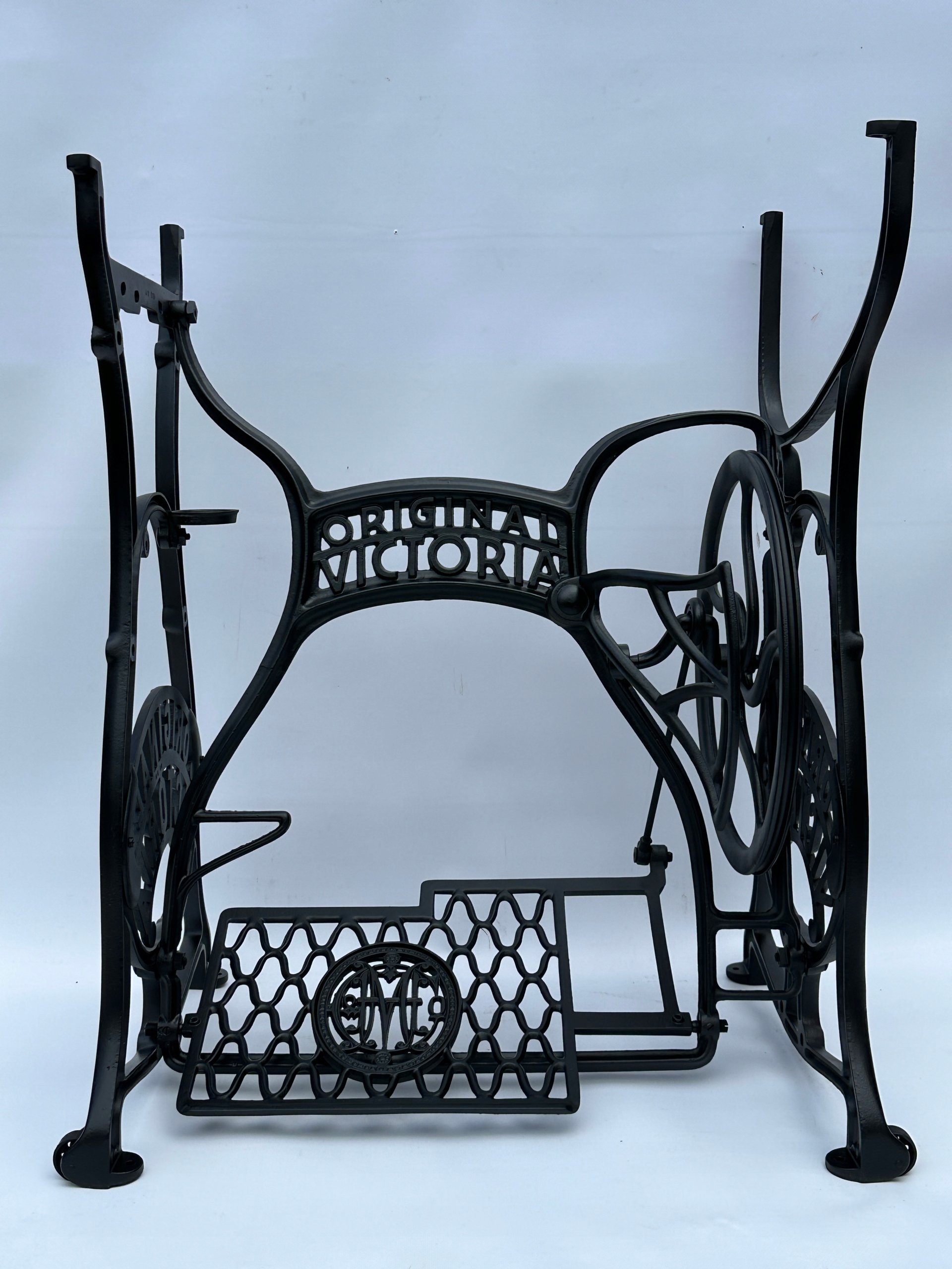 Предметом продажу є стара чавунна основа для швейної машини ORIGINAL VICTORIA. Дуже гарний візерунок. З боків і посередині є написи з логотипом компанії. У нього всі 4 колеса внизу. Додатковою перевагою є металевий елемент, який з’єднує колесо з педаллю приводу, тому ми можемо бути впевнені, що його не з’їдять дровоєди, що можливо в базах з дерев’яним елементом.